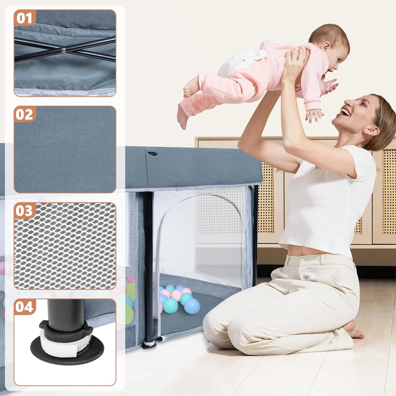 【安全で安定しています】外部のジッパーデザインは赤ちゃんが出て行かないように防ぎます。子供用のプレイヤードの各柱のベースは強力な吸盤で固定され、摩擦を増加させて安定性を確保します。