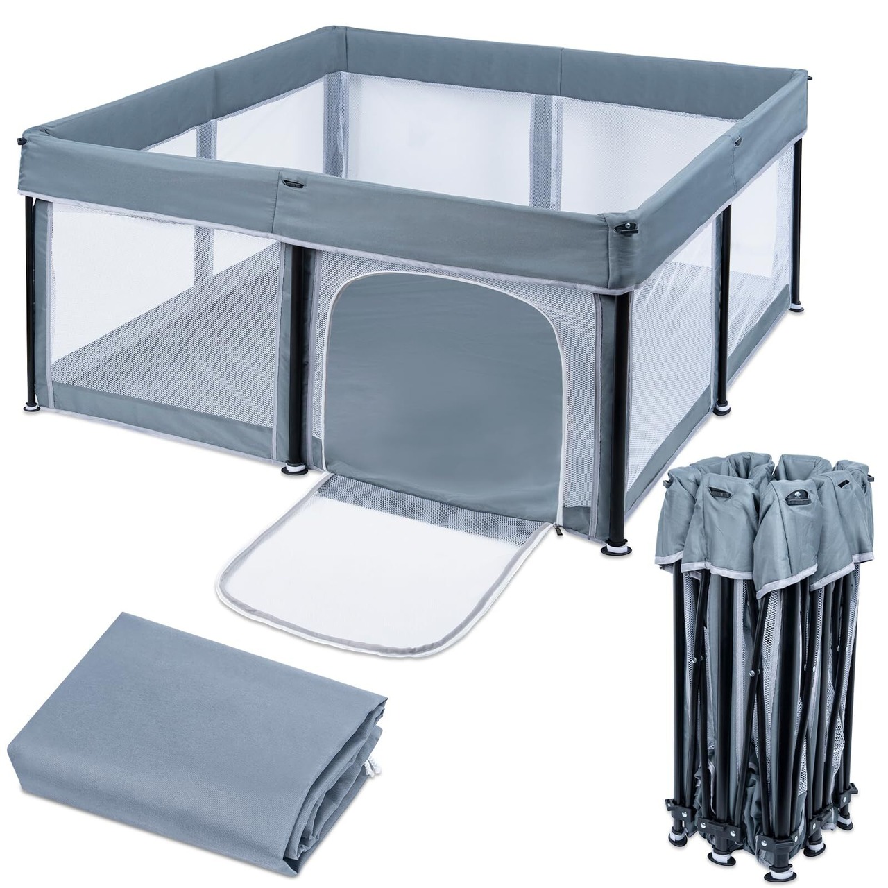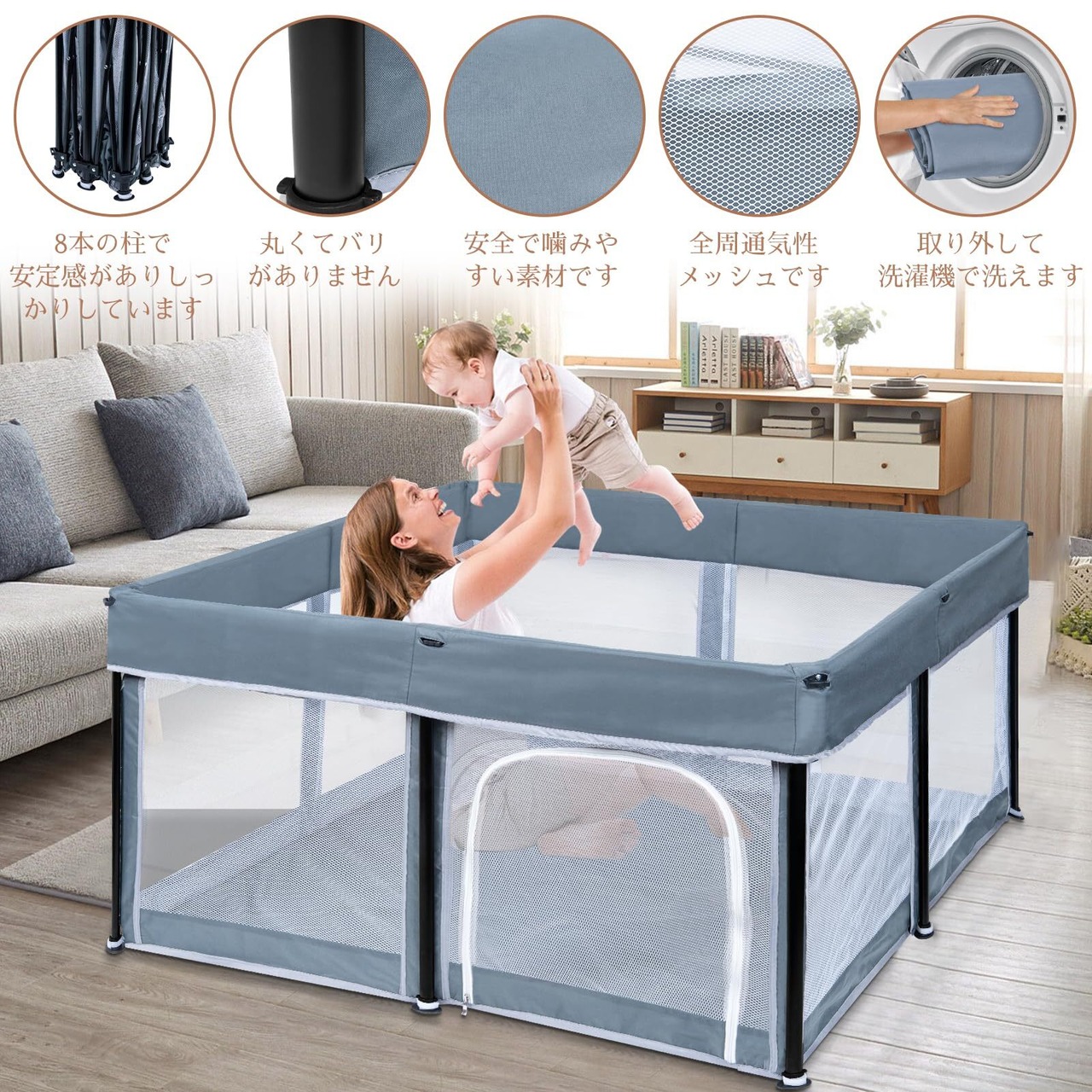 BQKOZFIN ベビーサークル 127x127x65cm 正方形 コンパクト 折りたたみ可能 扉付き 大型 baby playpen プレイヤード 滑り止め吸盤 メッシュタイプ 洗濯可能 子供、ペットが利用可能 収納バッグ付き 室内外対応 子供 軽量 | yankees
