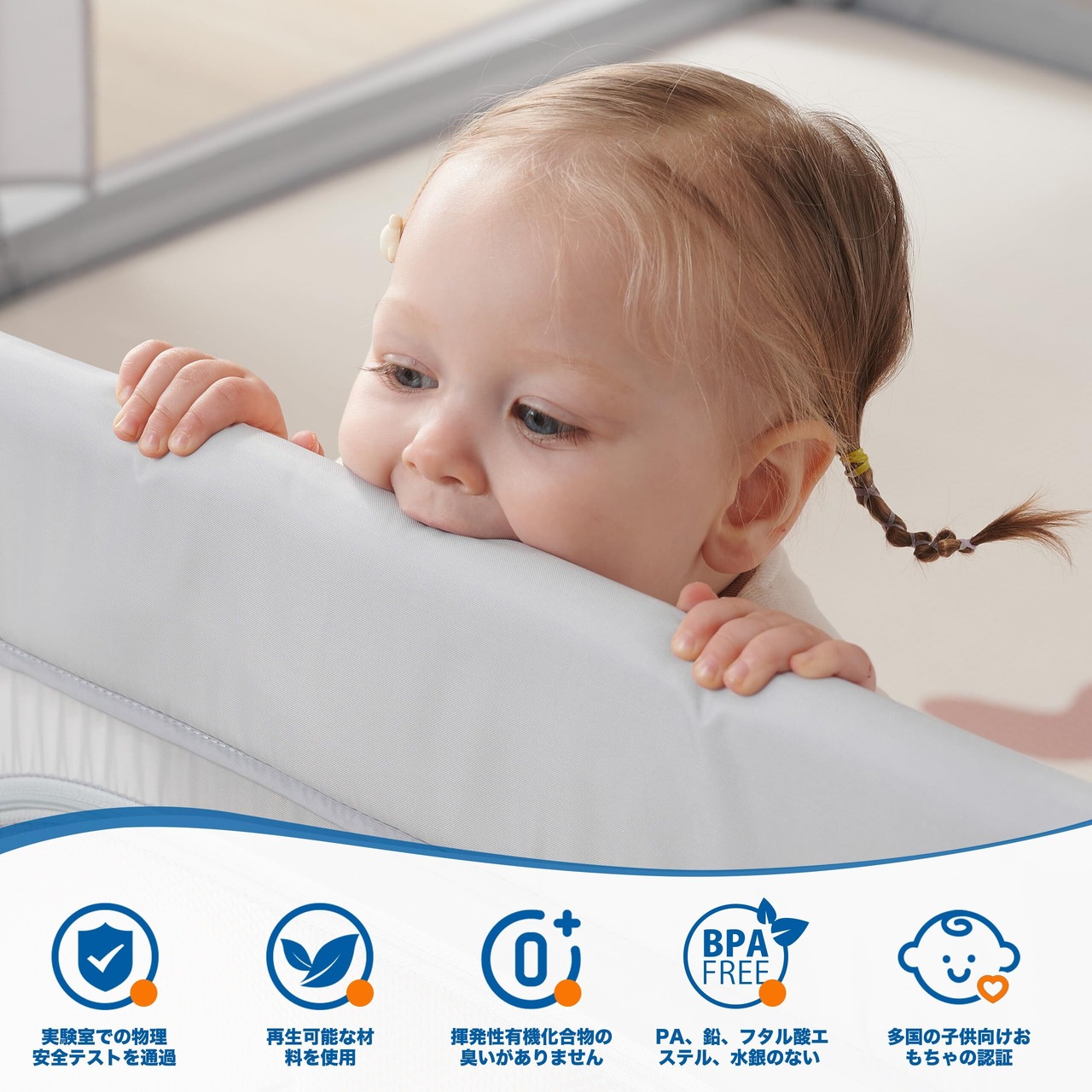 全ての親が気にするポイント: Sweebyのプレイペンは再生材料で作られており、製品は実験室テストに合格し、日本の食品衛生法およびST 2016基準に適合しています。BPAやフタル酸エステルなどを含まず、無毒無臭で、赤ちゃんの安全を確保し。