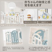 バスケット、ボール、リングが付属しているため、サークル内での遊びがさらに広がります。赤ちゃんの感覚を育む遊び道具としても役立ちます。