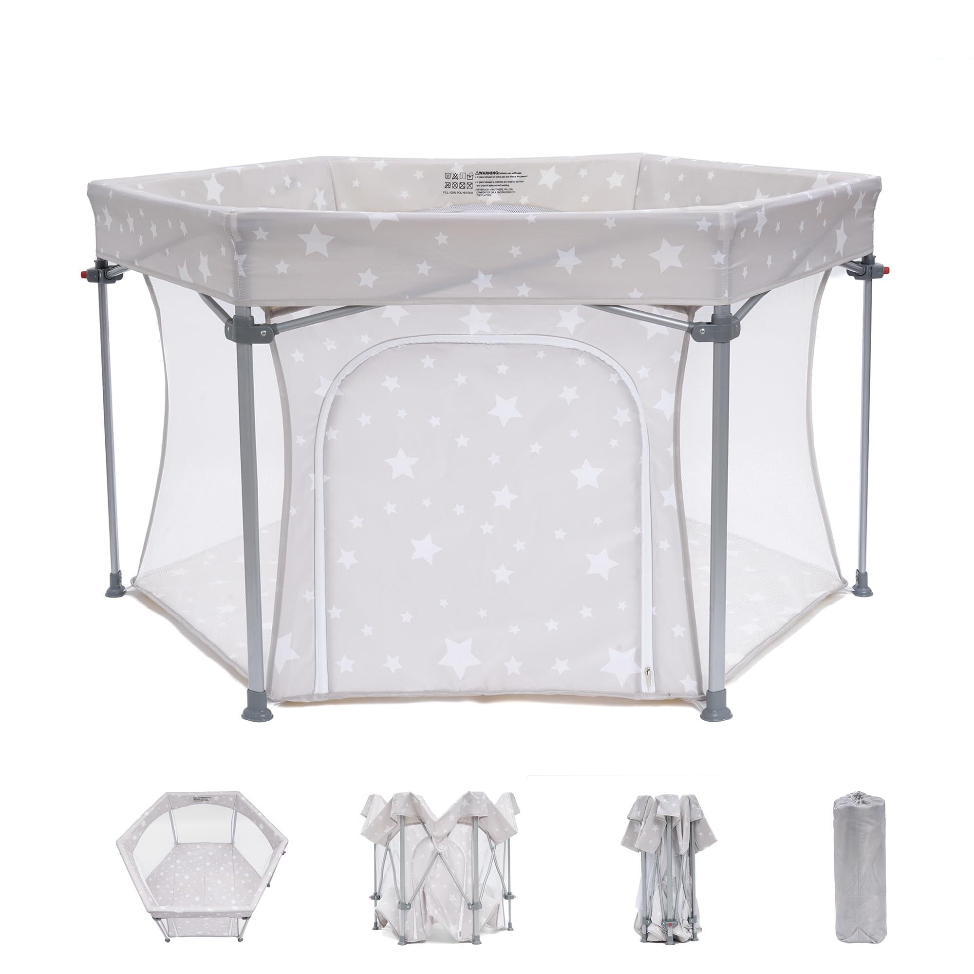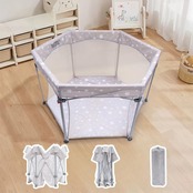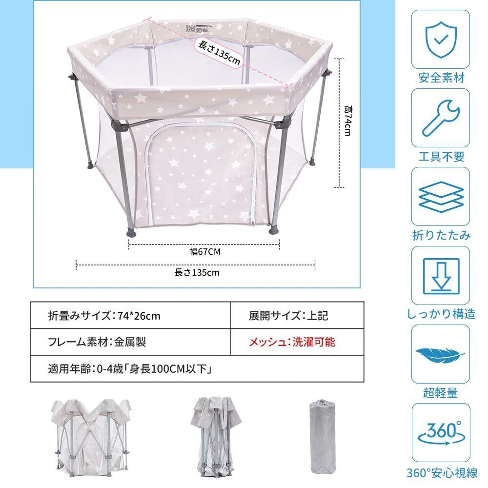 HZDMJ ベビーサークル 折りたたみ 簡単収納 洗濯機入れ ベビーサークル メッシュ 六角形 組立不要 ベビーフェンス コンパクト 洗える プレイヤード 新生児プレゼント ベビーゲート 持ち運び便利 出産祝い