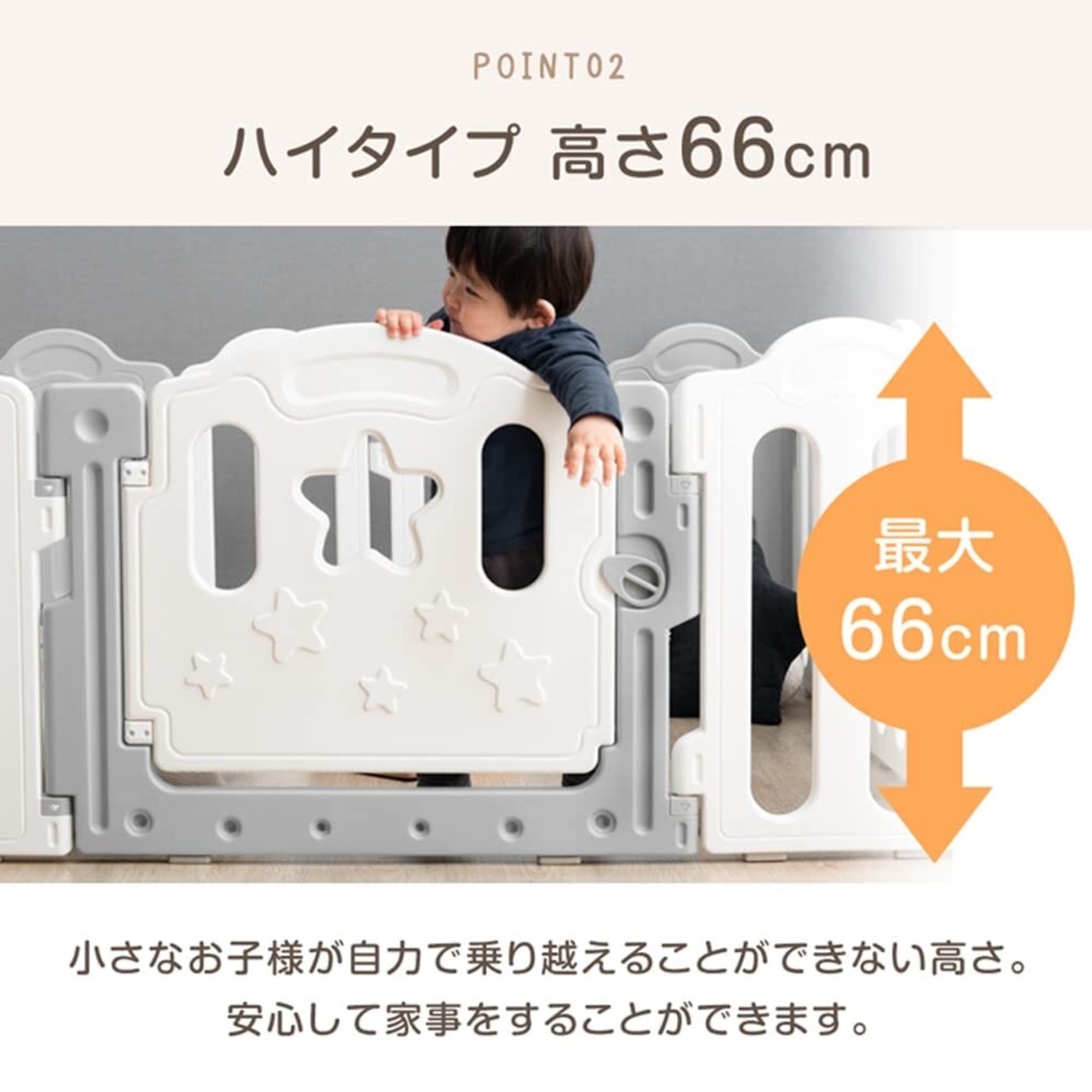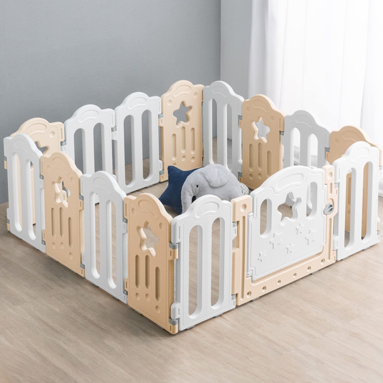 ・星型の窓と2色使いがおしゃれなベビーサークル