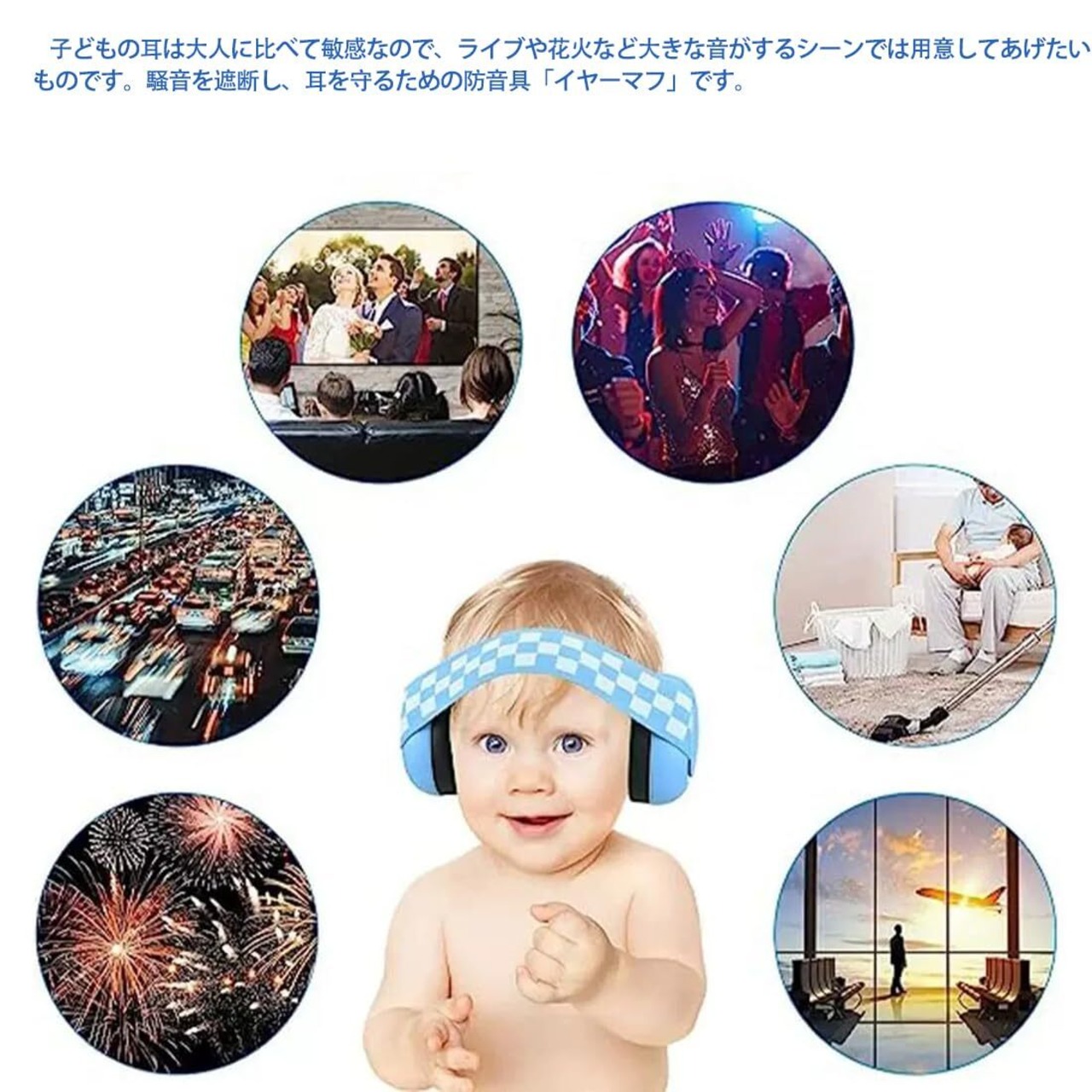 このイヤーマフは、コンサートや映画館、花火大会、日常の騒音など、様々なシーンで活躍します。また、聴覚過敏のお子様にも最適で、安心して静かな環境を提供します。
