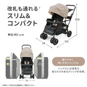 「[アイリスプラザ TWINベビーカー]」は、生後6か月からのお子様に最適な、スリムでコンパクトな二人乗りベビーカーです!改札も通れるサイズ感で、家族のお出かけをストレスフリーにサポートします。