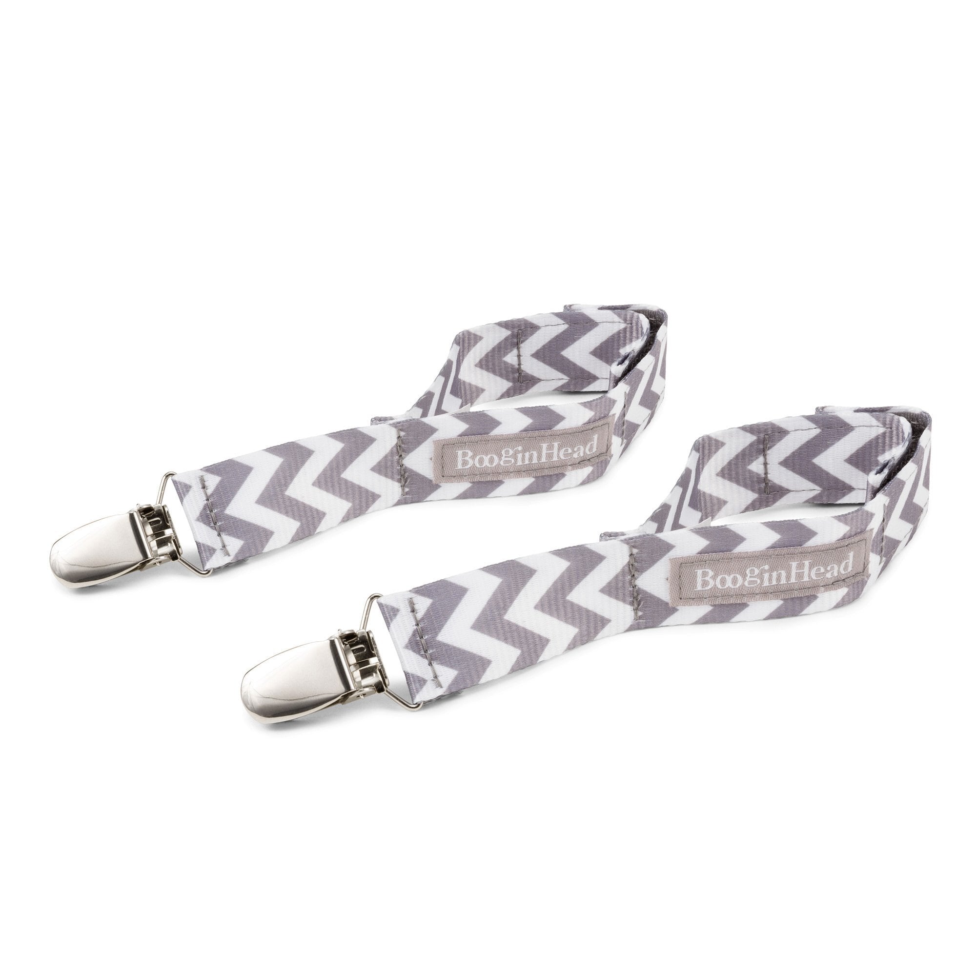 BooginHead (ブーギンヘッド) ベビーカークリップ ベビーカー用ひざ掛けクリップ ブランケット グリップ 2本組 グレー/ホワイトシェブロン