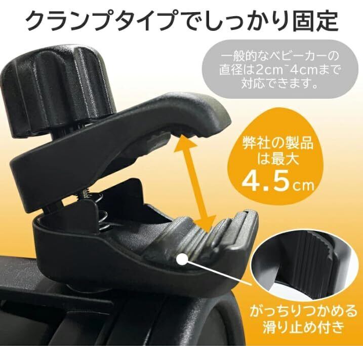 取り付けは非常に簡単で、ベビーカーのハンドルにしっかりと固定できます。特別な工具は不要で、誰でもすぐに使い始めることができます。