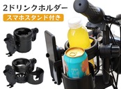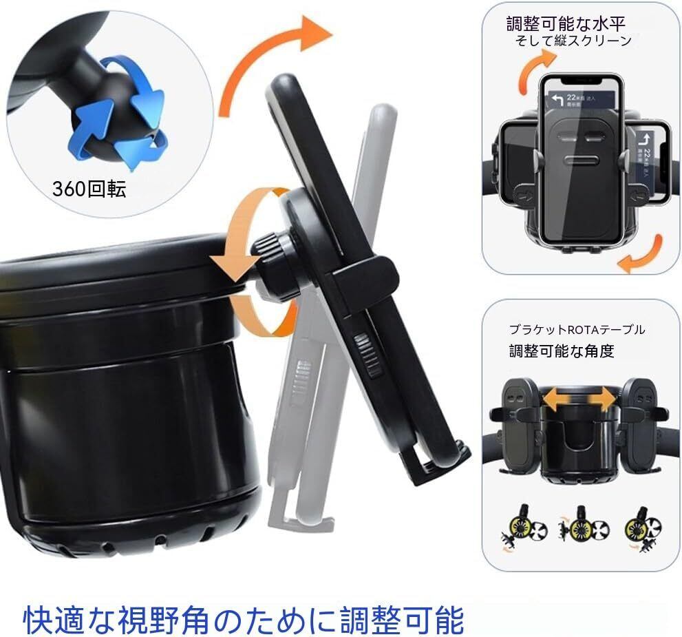 ベビーカードリンクホルダー スマホ対応 2in1 カップホルダー 哺乳瓶 飲み物 ホルダー キッズ ボトルホルダー 360度回転 角度調整 取り付け 収納便利 携帯電話収納 ペットボトル 水分補給 (ブラック)