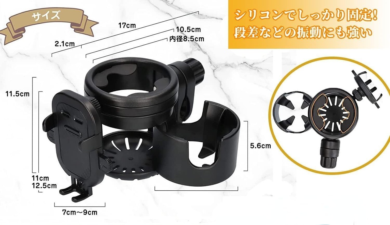 【多機能用途】:ベビーカースタンド、哺乳瓶、コップ、携帯電話を同時に置くことができ、買い物、自転車、赤ちゃんと外出するときに両手を解放することができる。親子で簡単に飲み物が飲めます。揺れてもコップや携帯電話のレベルを保つことができるという機能が安心です。