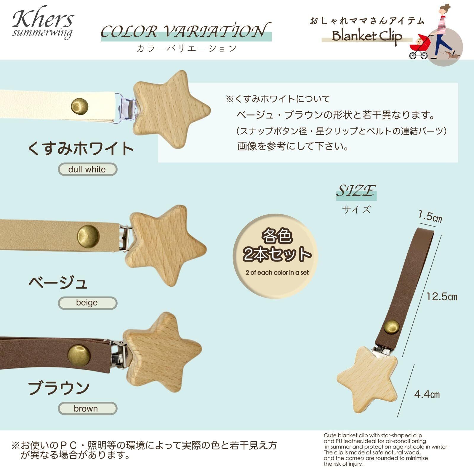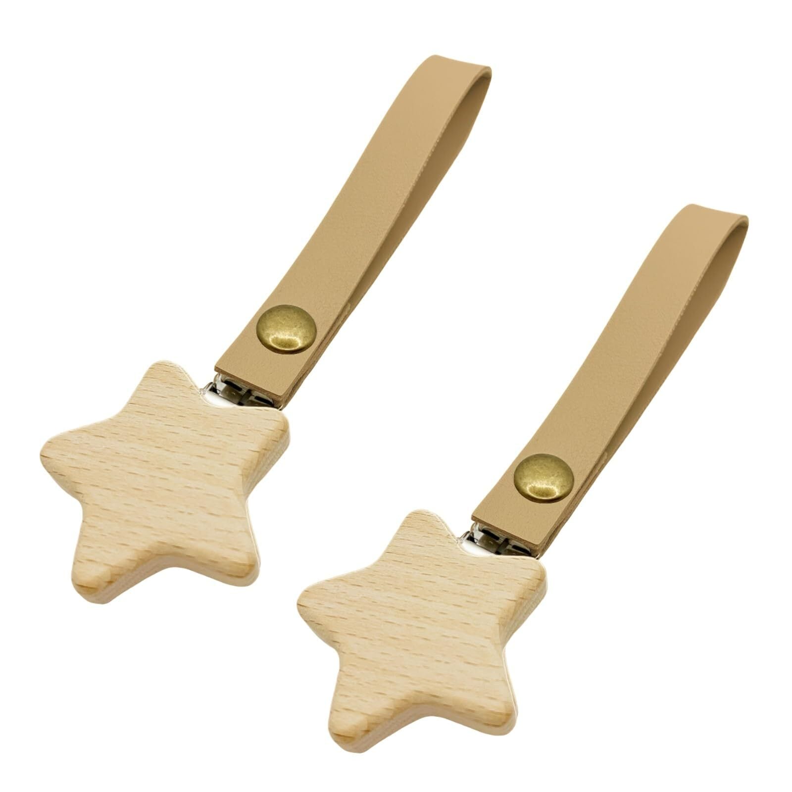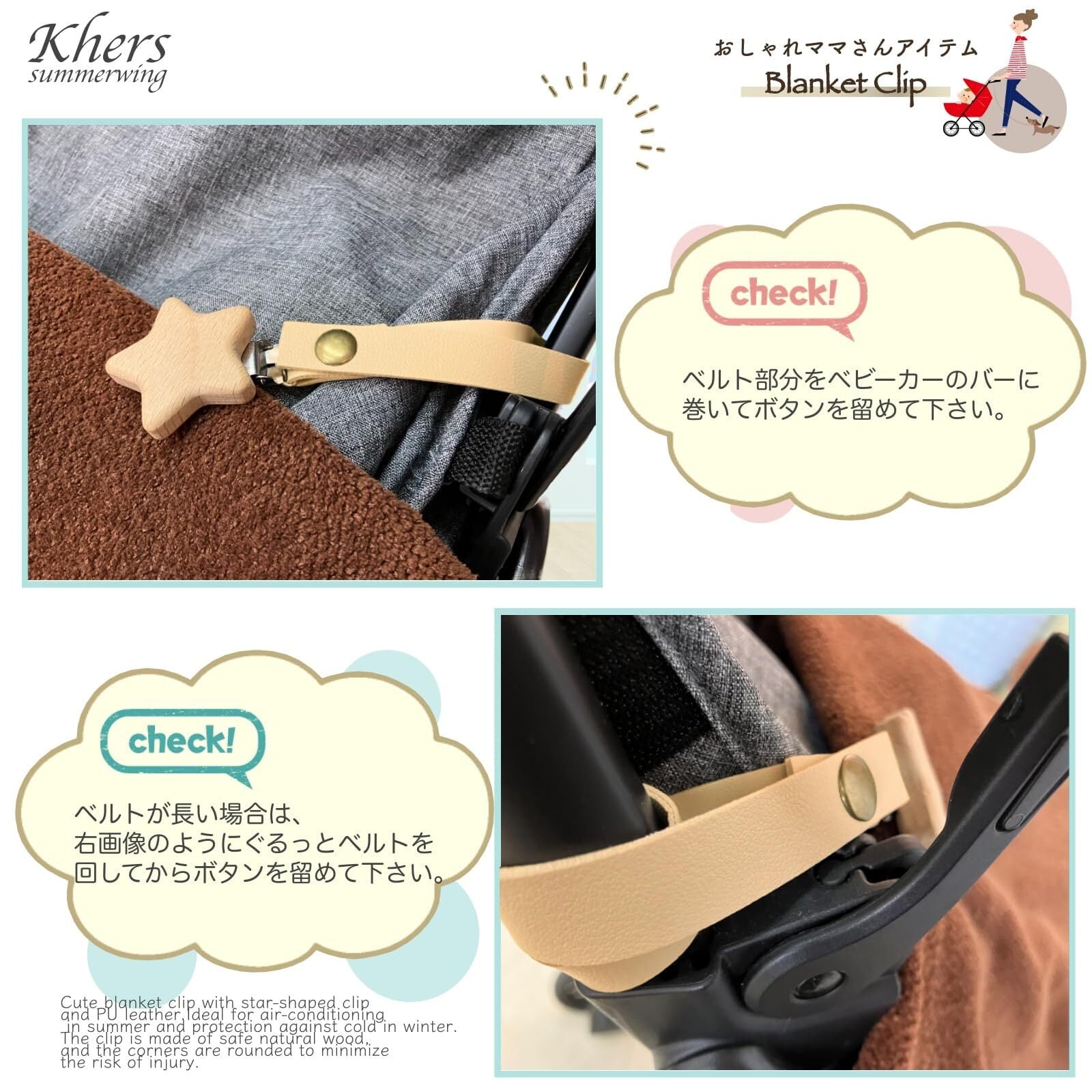 天然木製星型クリップとニュアンスカラーのPUレザーがおしゃれでかわいいブランケットクリップ。