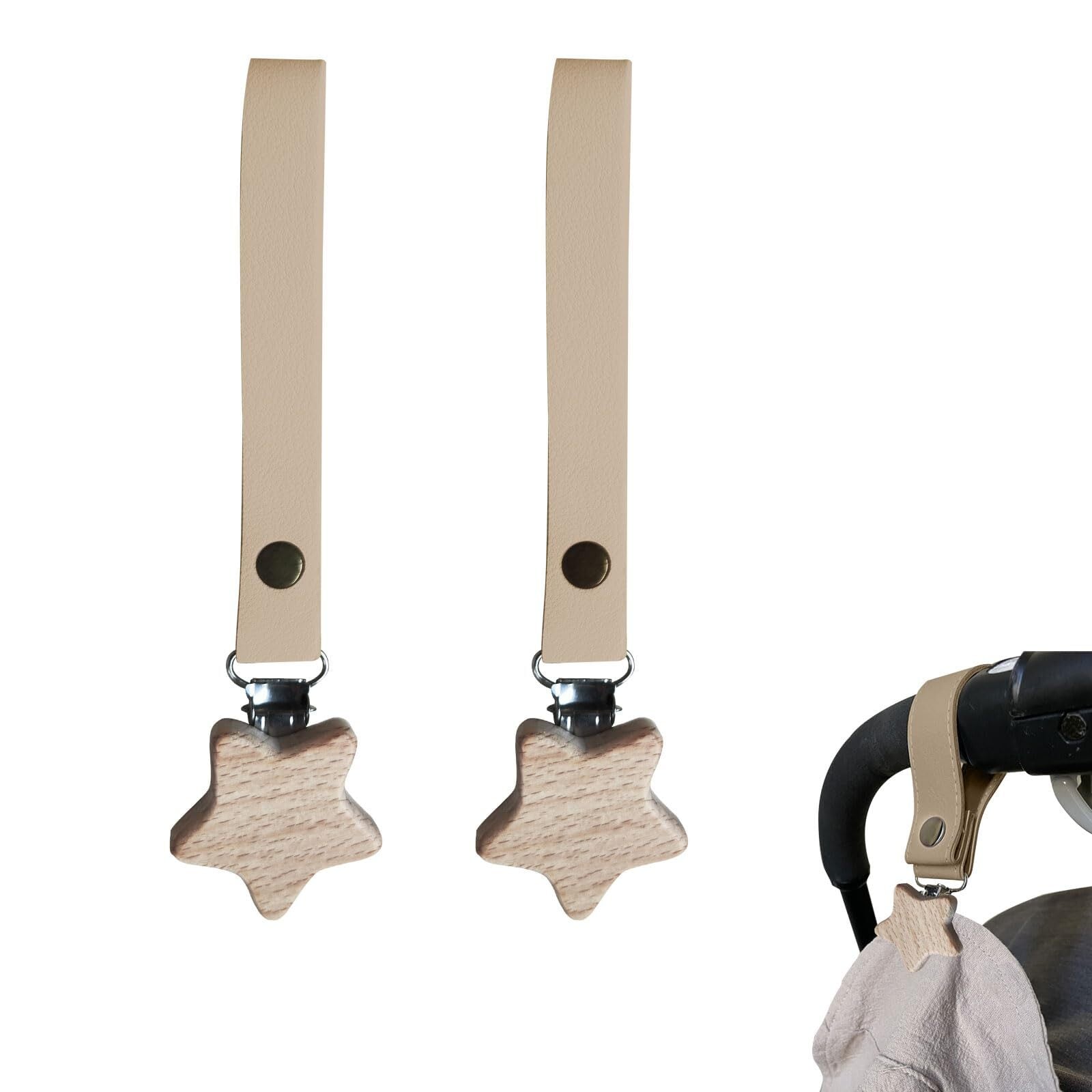 aninako ブランケットクリップ ベビーカー 2本セット ベビーカー クリップ PUレザー 革 落下防止 ベビーカー アクセサリー 木製 ベビーカー用ブランケット (アンズ*2) | yankees