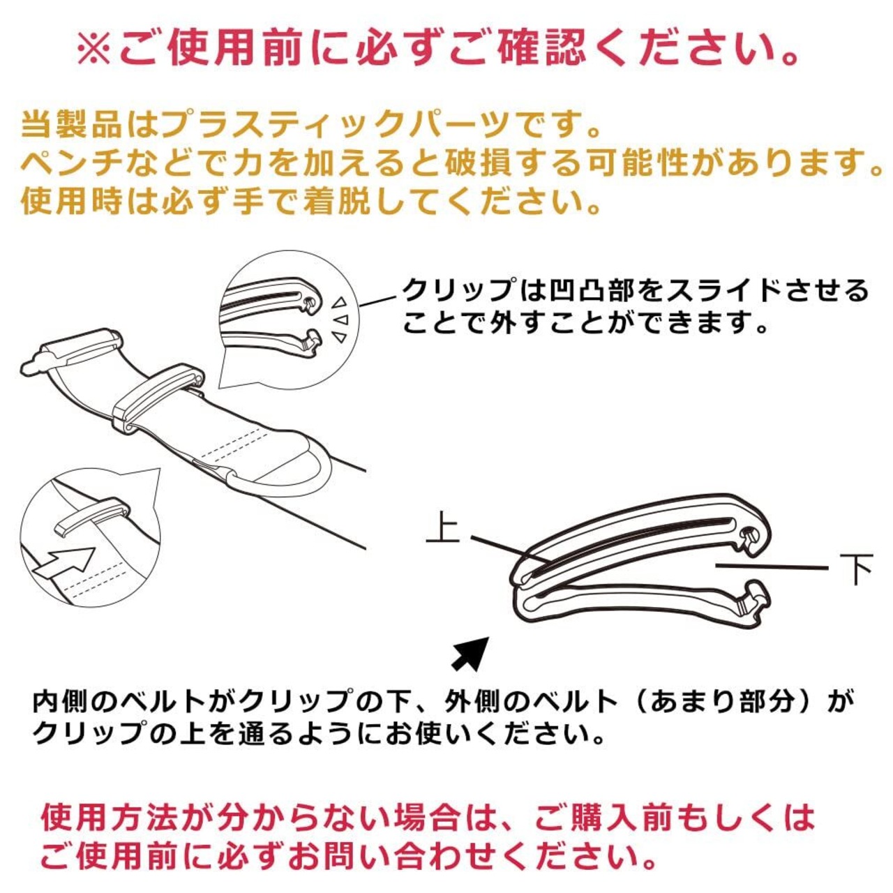 「テープクリップ」は、パパバッグや日常のスタイルをサポートする便利アイテムです!50mm幅のベルトをしっかりと固定し、余分なテープをスッキリと留められます。