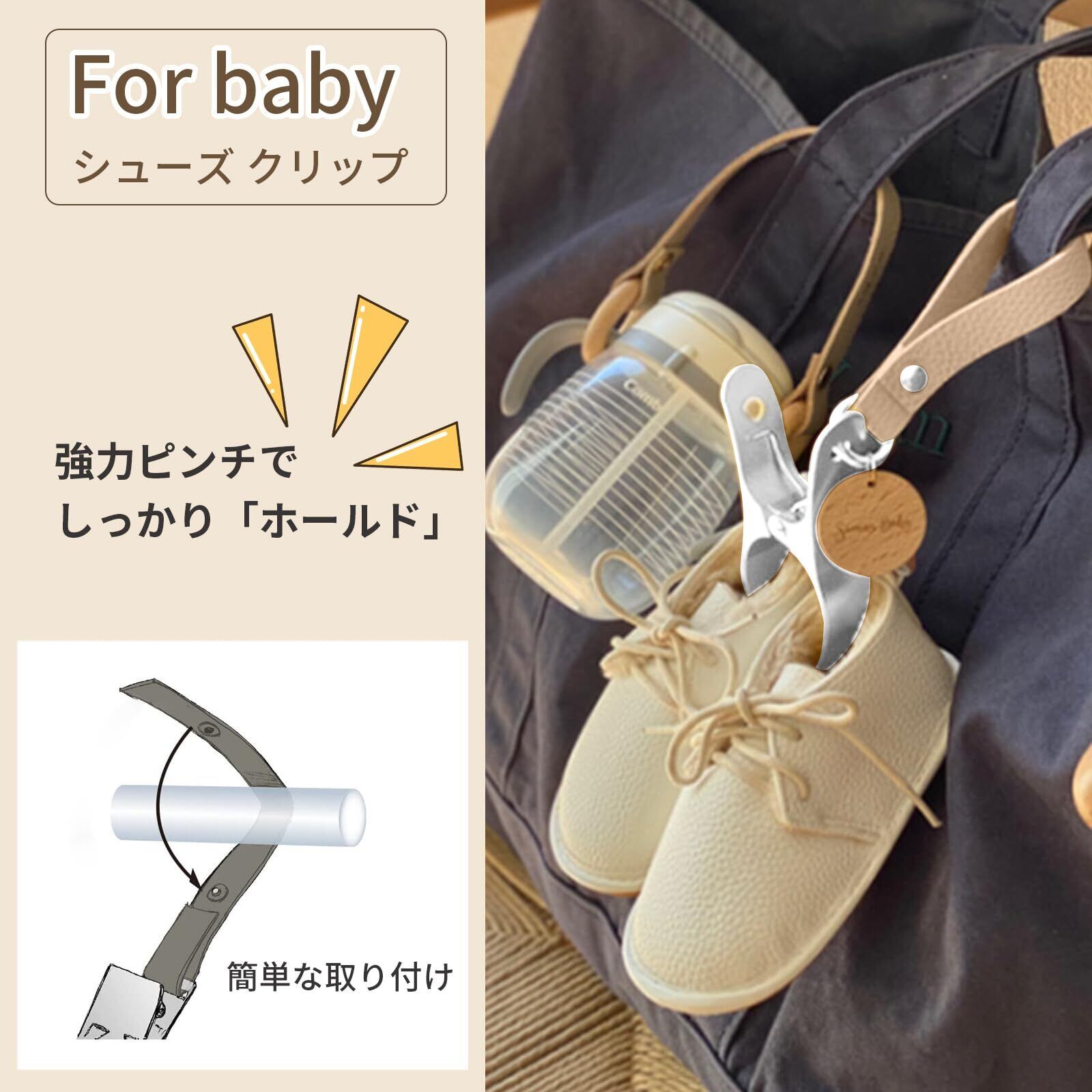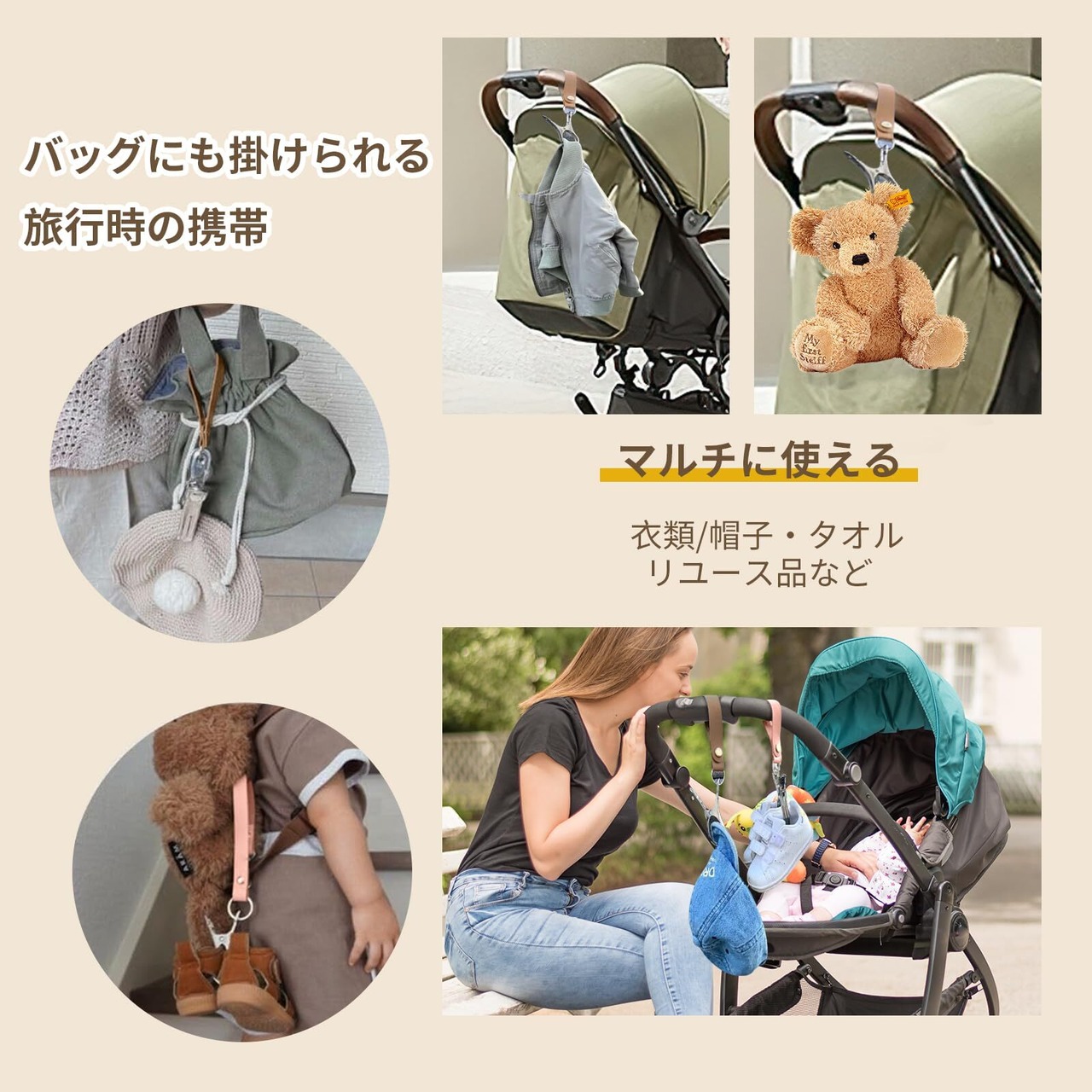 このシューズクリップは、ベビーカーだけでなく、日常のバッグやおもちゃ、お子様の帽子やペットのリードなど、さまざまなアイテムに対応します。1つ持っているだけで、多様なシーンで活躍します。