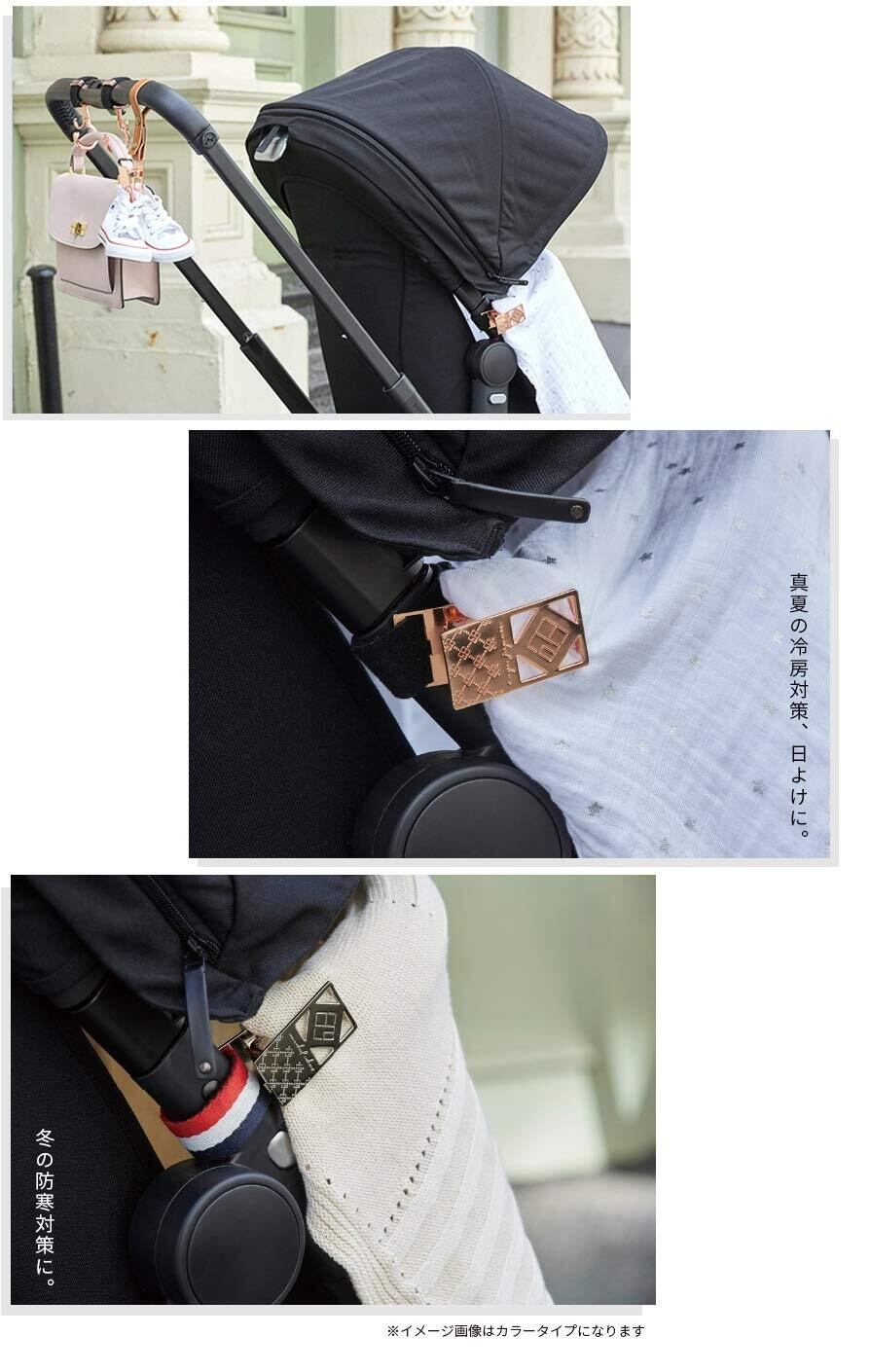 プラスチック製は壊れやすいかも…。ベビーカーにオシャレなものを付けたいなぁ… そんなママの要望から高級感のあるユニセックスなデザインで、パパにもおススメなブランケットクリップがついにリリース!ベビーカーに取り付けて、夏場の紫外線対策のタオルケットや冬場の防寒対策のブランケット等のずり落ちを防止します。マジックテープで簡単に取り付けられるので、車内等の取っ手に付けて、タオルやオモチャなどのちょっとした小物留めにもGood。お子様に当たらないような長さにしておりますが、お子様は思わぬ動作をしますので、保護者の目の届くところでご使用下さい。ベルト部分を外せば、ストラップホールがあるので好きなアクセサリーやキーホルダーを付けるとオリジナルのブランケットクリップとしても楽しめます。