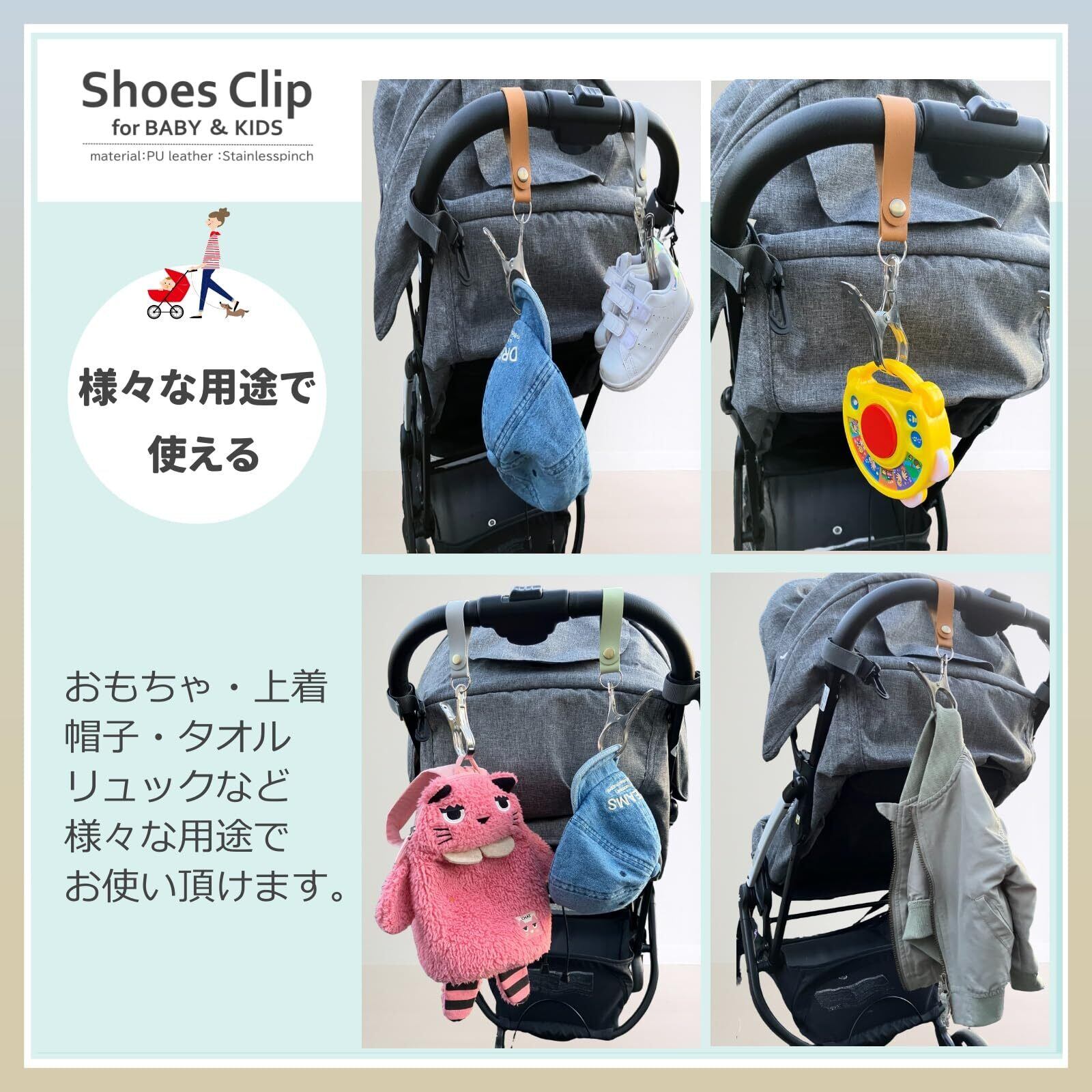 このクリップは、ベビーカーに限らず、お子様のシューズや帽子、さらには日常のバッグなどにも使える優れたアイテムです。1つ持っているだけで、さまざまなシーンで大活躍します。