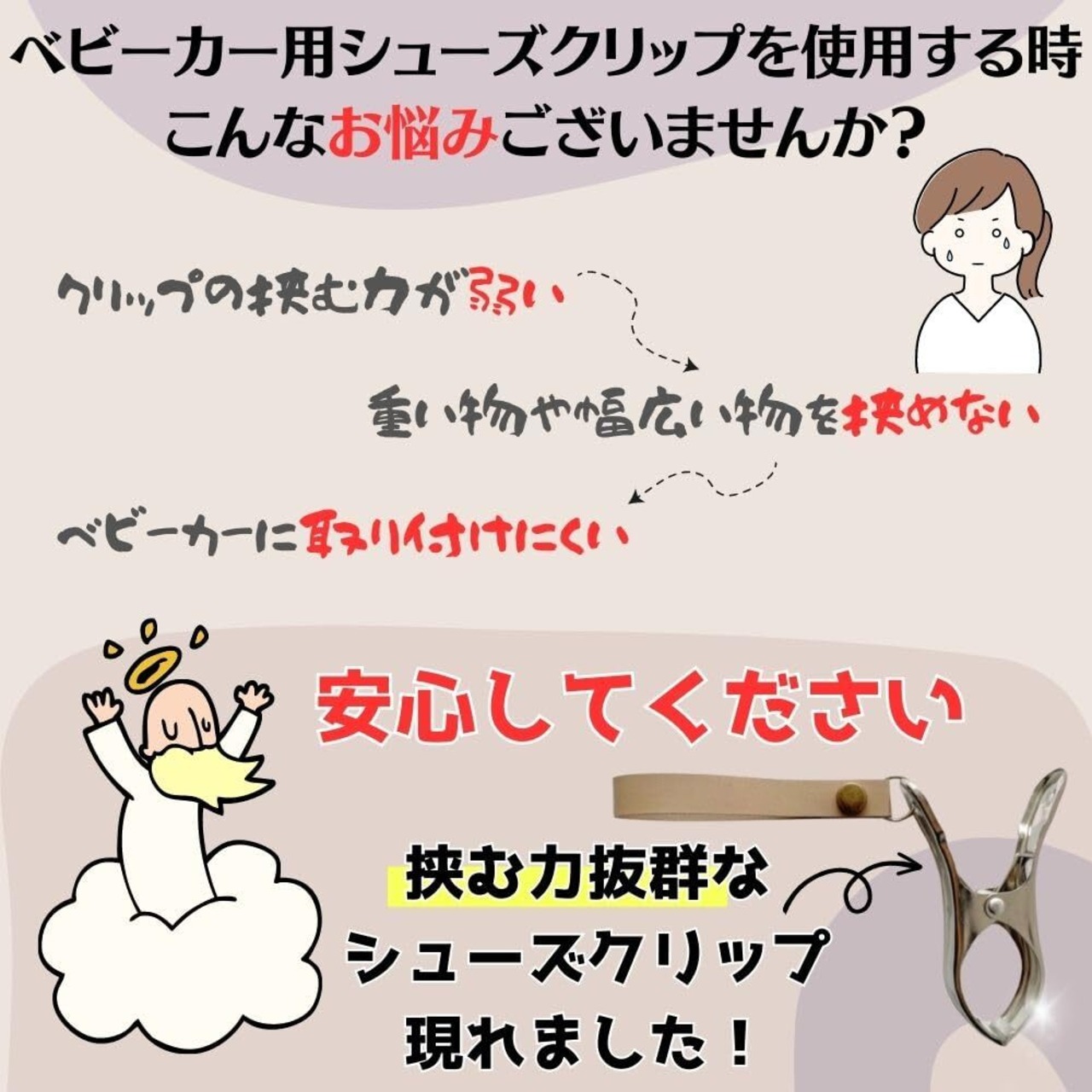 かわいらしいデザインのシューズピンチやボトルクリップをご紹介します。これらのアイテムは子供や赤ちゃんの日常生活をサポートするための便利なベビーカーグッズです。 シューズピンチは、子供の靴をベビーカーやリュックに簡単に取り付けられるアイテムです。かわいいデザインや色使いが特徴で、お子さんのお気に入りのシューズをしっかりホールドします。赤ちゃんの靴もしっかりと固定し、お出かけ中の脱げ落ちを防止します。 ボトルクリップやピクシーフックリップは、ベビーカーやリュックにボトルやおもちゃを取り付けるのに便利なアイテムです。子供のお気に入りのボトルやおもちゃを手軽に持ち運びでき、赤ちゃんの飲み物や遊び道具がすぐに手に取れます。 シューズホルダーもまた、ベビーカーやリュックに靴を取り付けるのに便利なアイテムです。シューズホルダーを使えば、靴を持ち運ぶ手間が省けます。子供や赤ちゃんの靴を簡単に収納でき、お出かけがさらに便利になります。 これらのかわいいベビーカーグッズは、子供や赤ちゃんのお世話をする方々にとって必須のアイテムです。便利さとかわいらしさを兼ね備えた商品群ですので、ぜひお試しください。