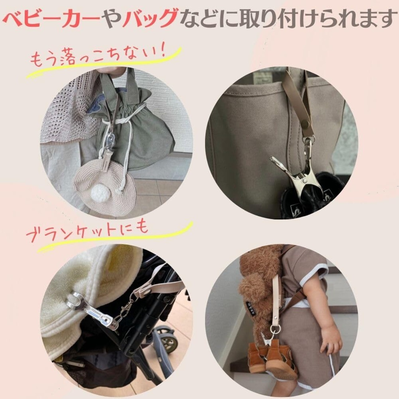 このクリップは、ベビーカーだけでなく、お子様の帽子やおもちゃ、さらには日常のバッグなどにも活用できる優れたアイテムです。1つあれば、さまざまなシーンで活躍します。