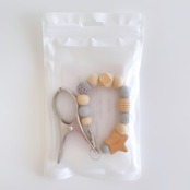 ナチュラルカラーと木製のお星様またはくまさんが可愛らしいシューズクリップです。おしゃれで便利にお子様のお靴を持ち運びしていただけます。