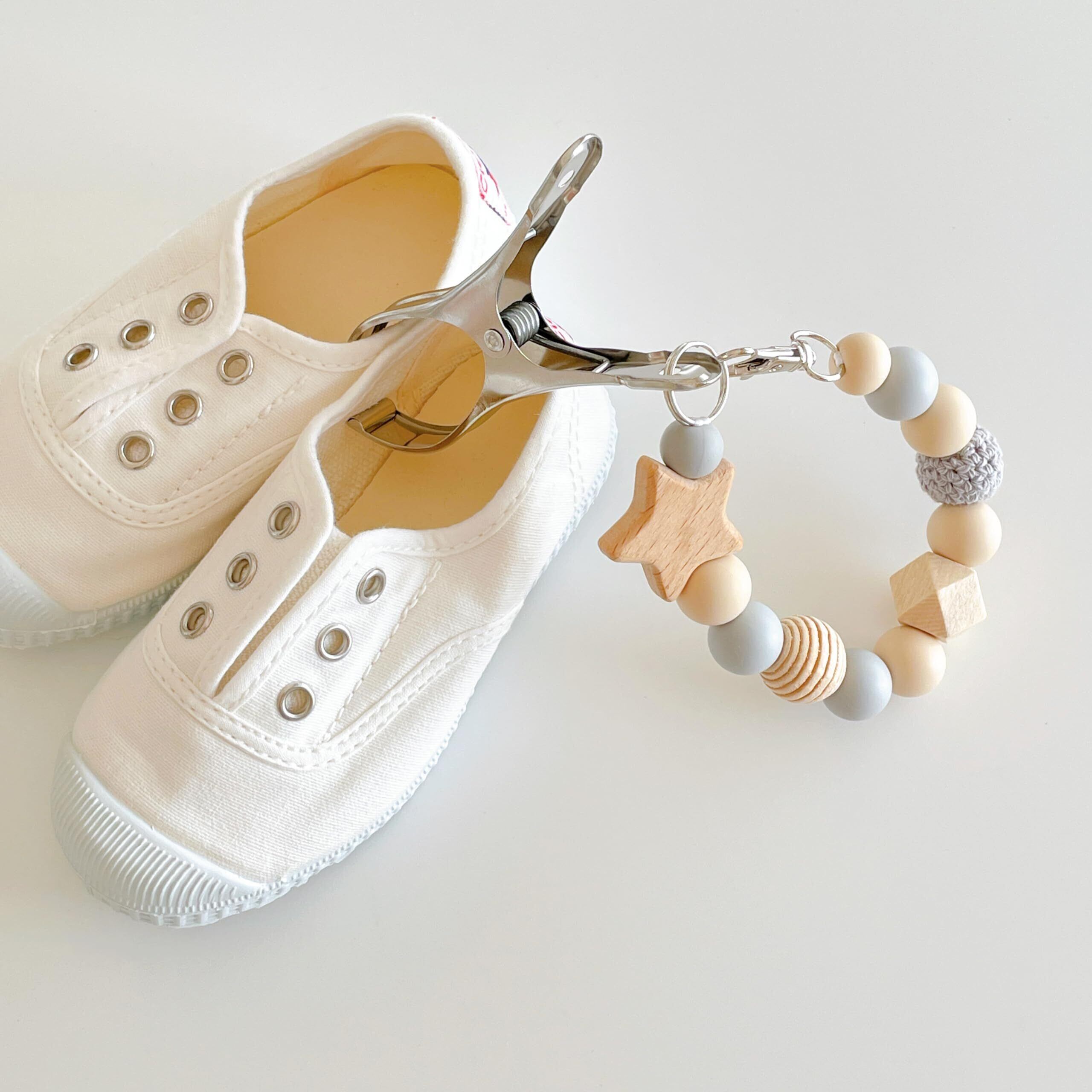 このクリップは、ベビーカーや靴だけでなく、帽子や小物の落下防止にも使用できる優れたアイテムです。1つ持っていると、さまざまなシーンで大いに役立ちます。