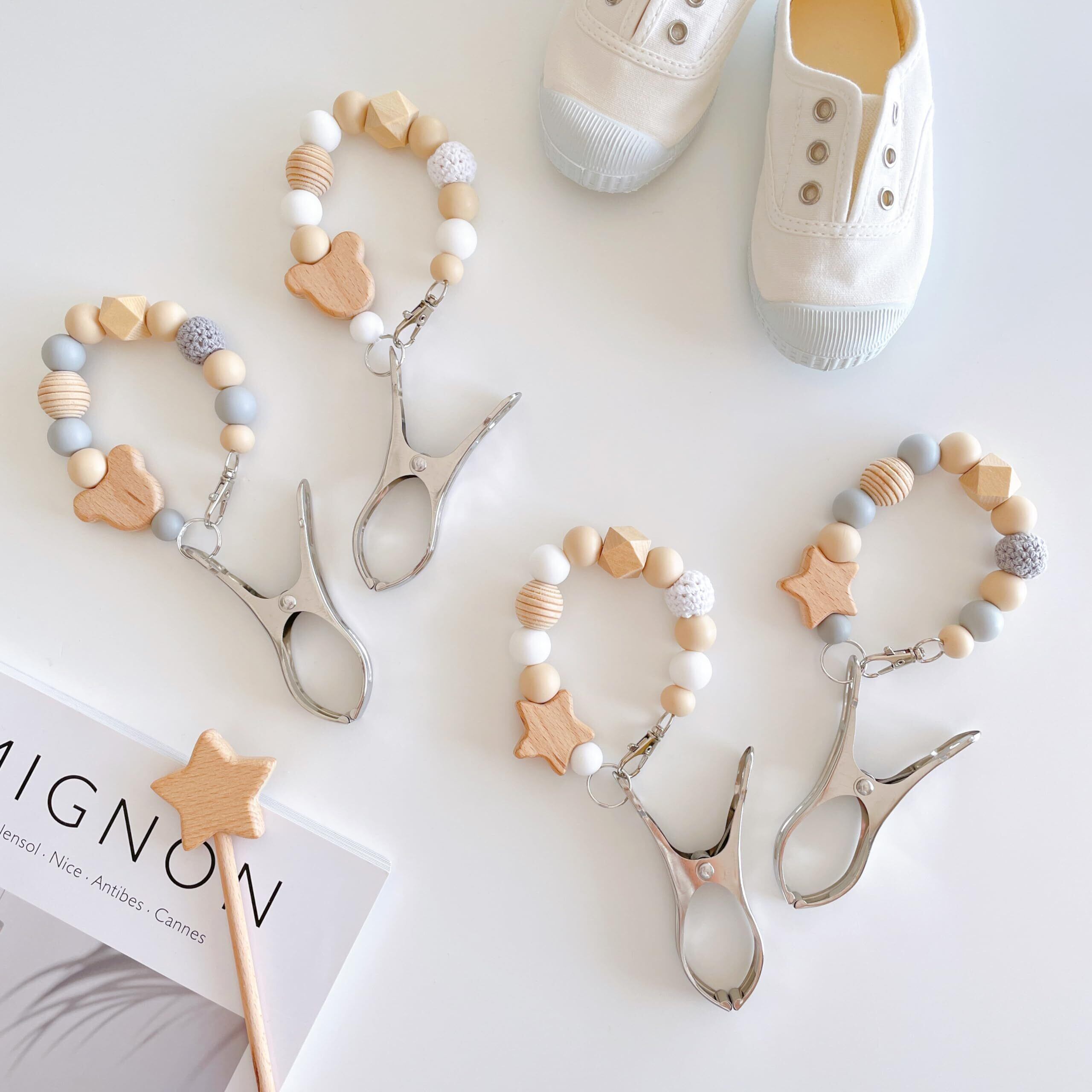 Lulu & Fleur(ルルフルー)お星様/くまさんのシューズクリップ シューズホルダー ベビーカー ファーストシューズ 落下防止 紛失防止 ベビーグッズ 出産祝い (グレー×くま) | yankees