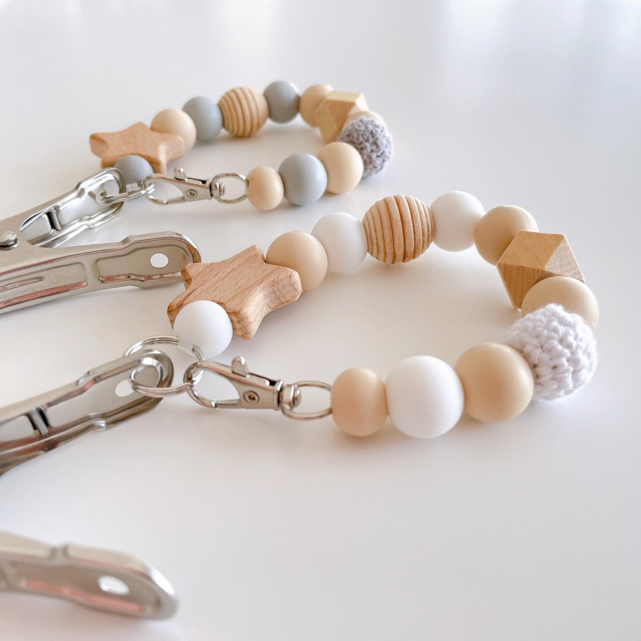 靴だけでなく、帽子やタオルを挟むなど、あんよの前からマルチクリップとしても長くお使いいただけます。