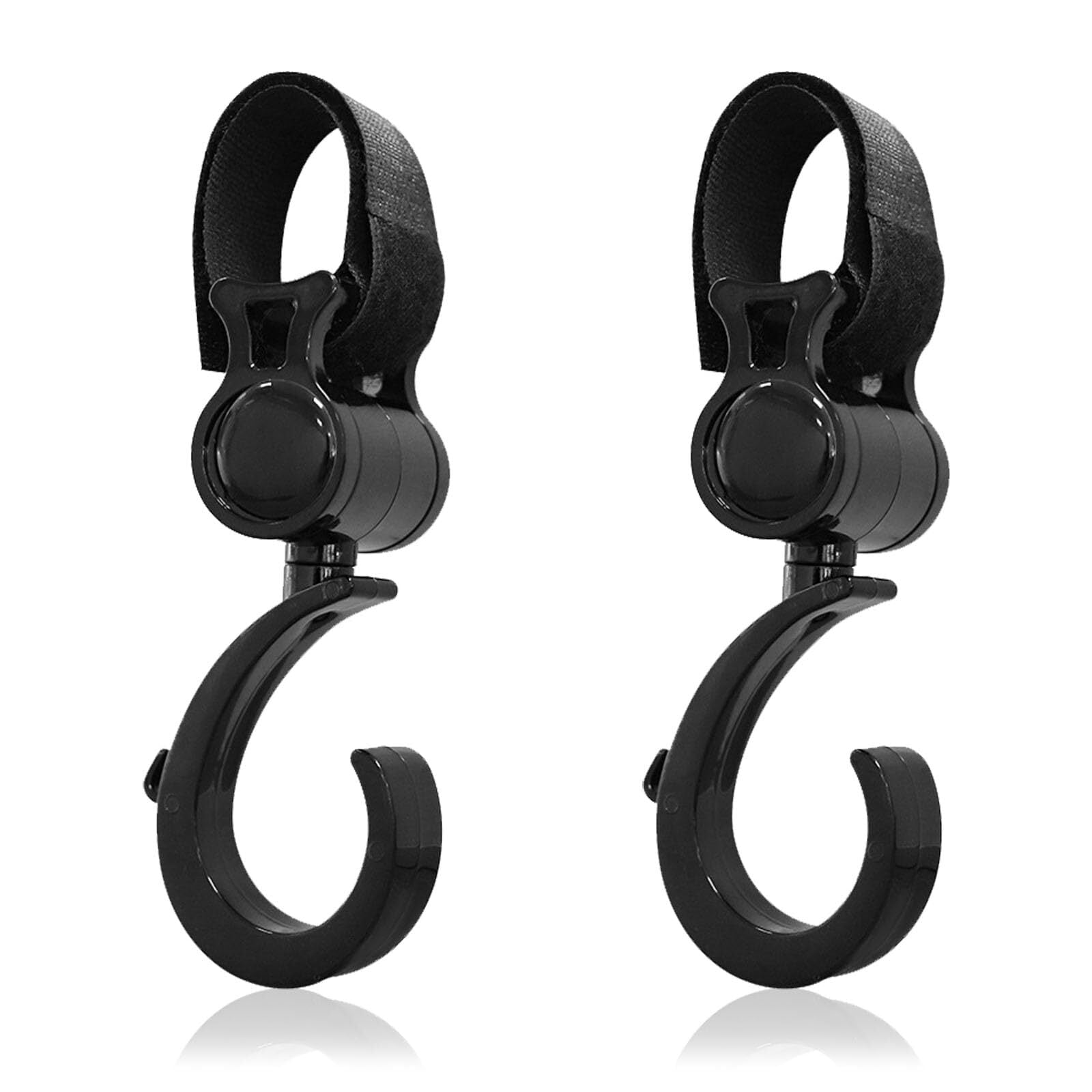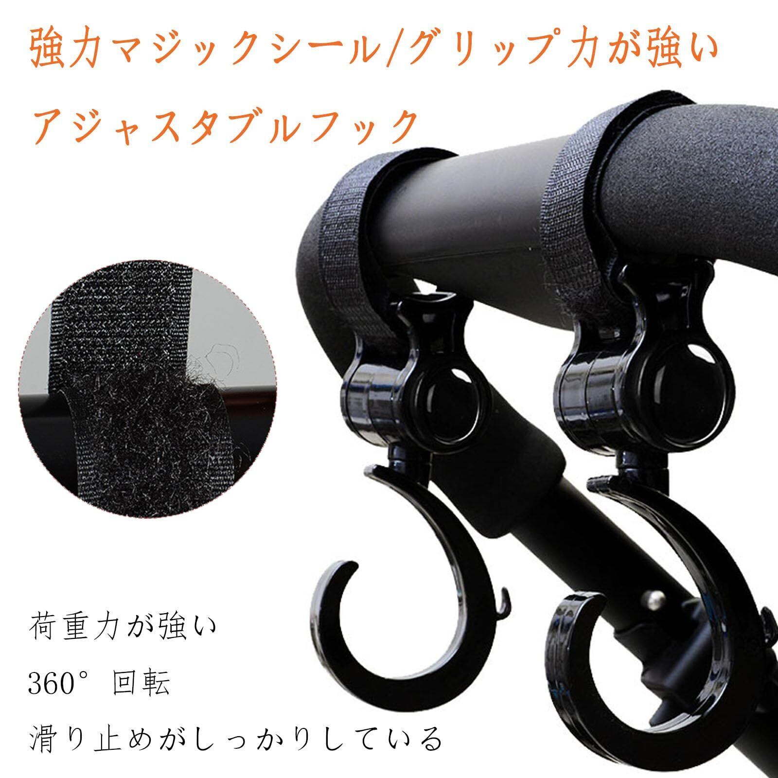 FamGift ベビーカー フック 荷物掛け 多機能 360度回転 共通 電気自動車フック 部品 マジックテープ滑り止め 強力荷重 耐荷重20 kg 堅牢で耐久性がある 使い勝手がよい 万能 ベビーカー(2個 ブラック) | yankees