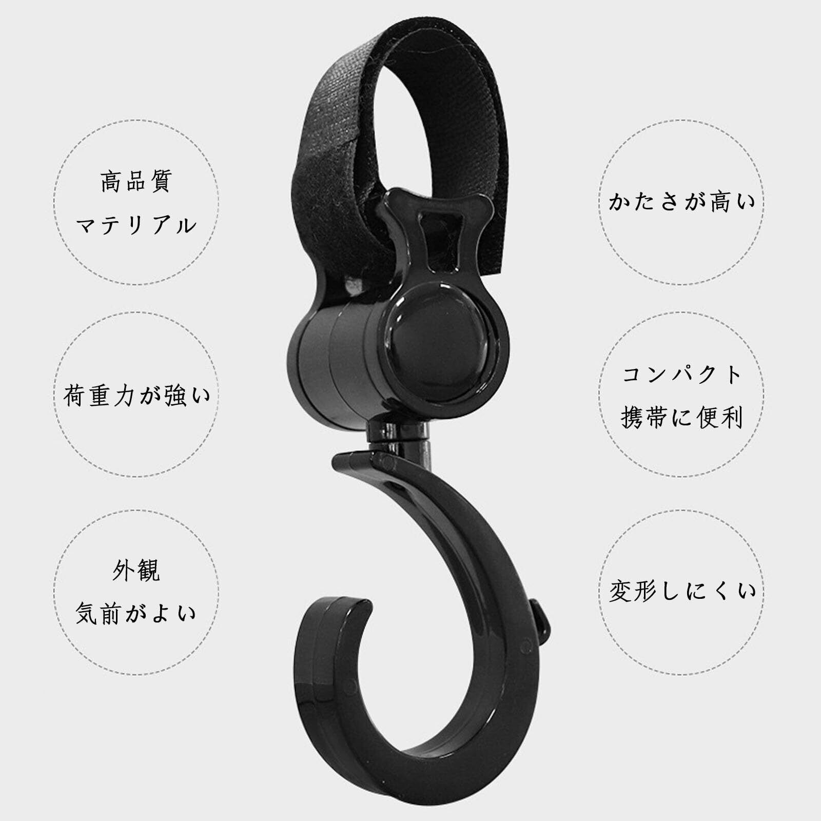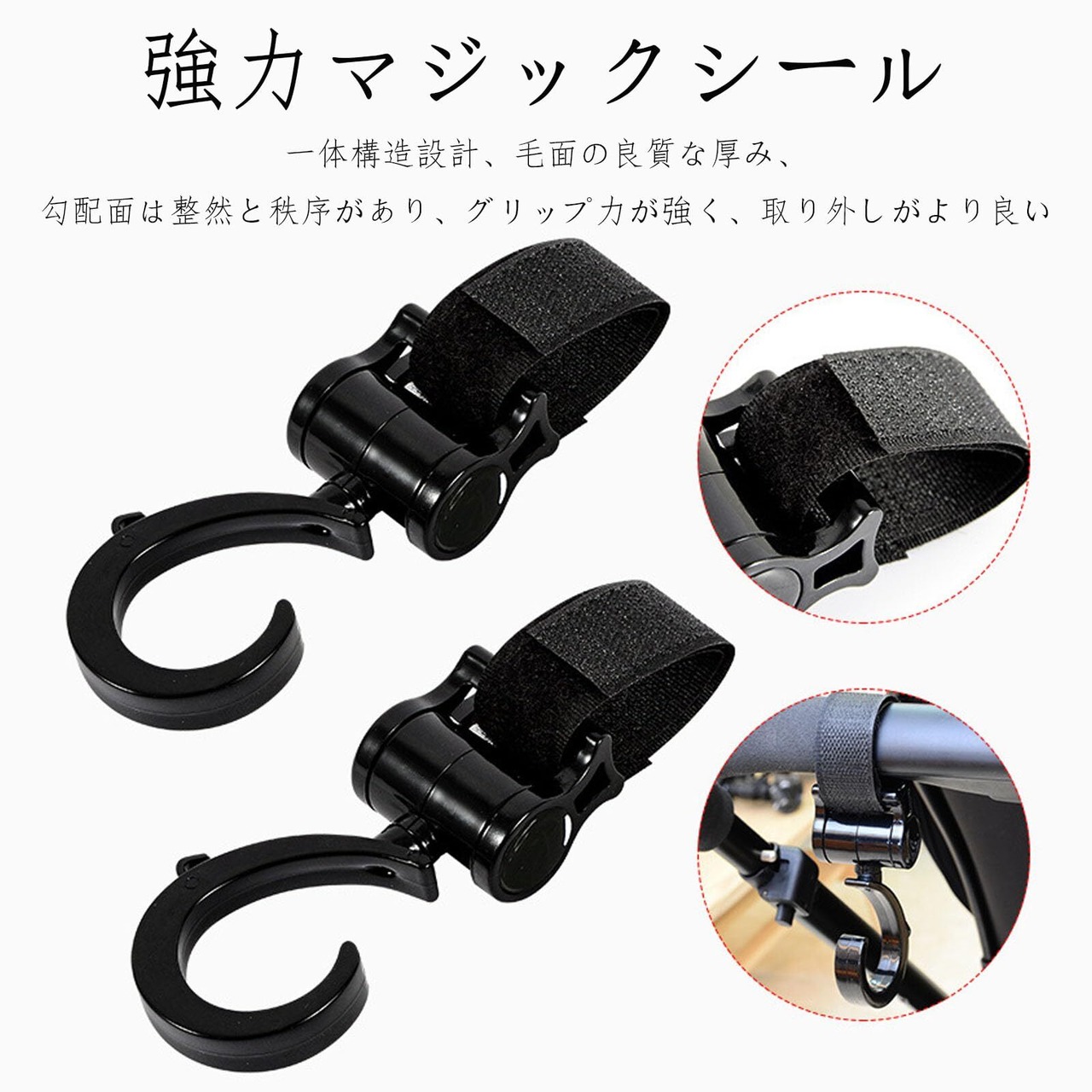 FamGift ベビーカー フック 荷物掛け 多機能 360度回転 共通 電気自動車フック 部品 マジックテープ滑り止め 強力荷重 耐荷重20 kg 堅牢で耐久性がある 使い勝手がよい 万能 ベビーカー(2個 ブラック)