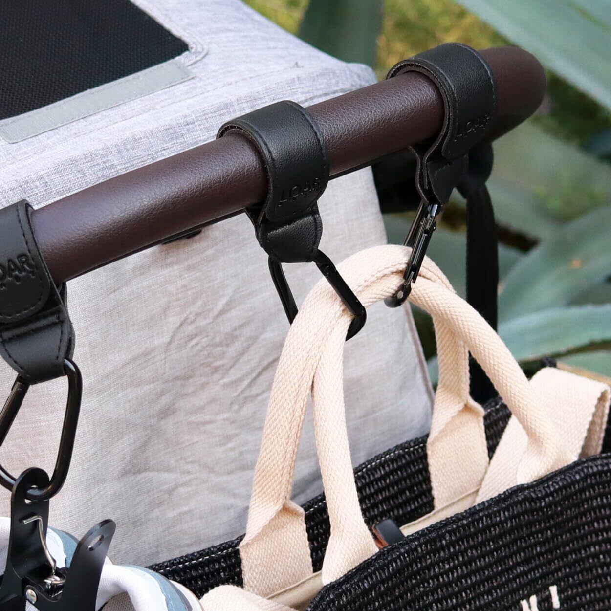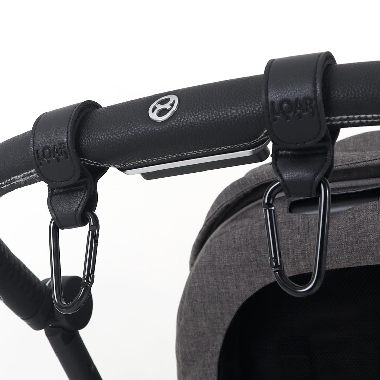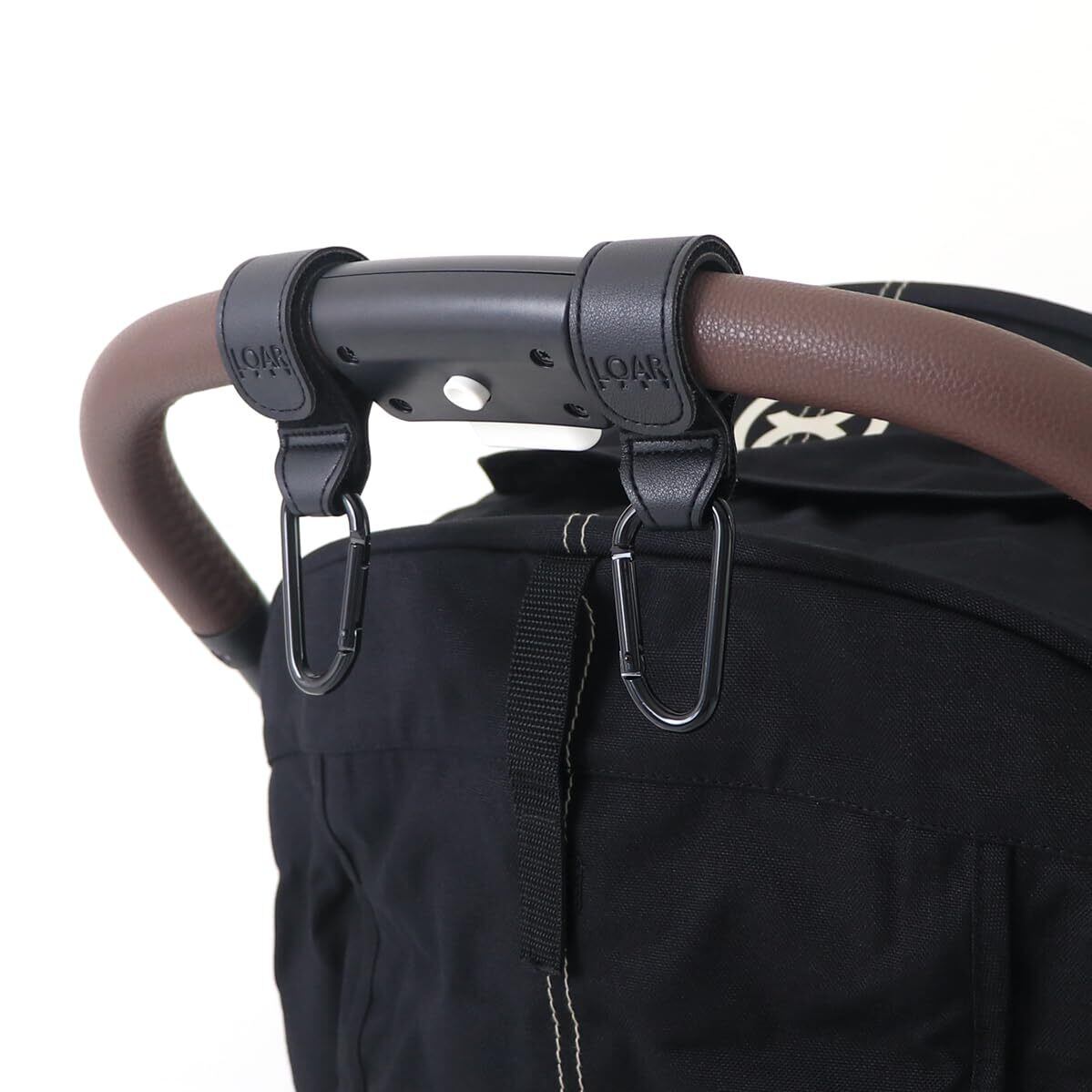LOAR BABY(ロアベビー) ベビーカーフック カラビナ ベビーカーグッズ ベビーカー荷物掛け 2個セット カラビナフック おしゃれ 合皮 ギフト プレゼント (ブラック)