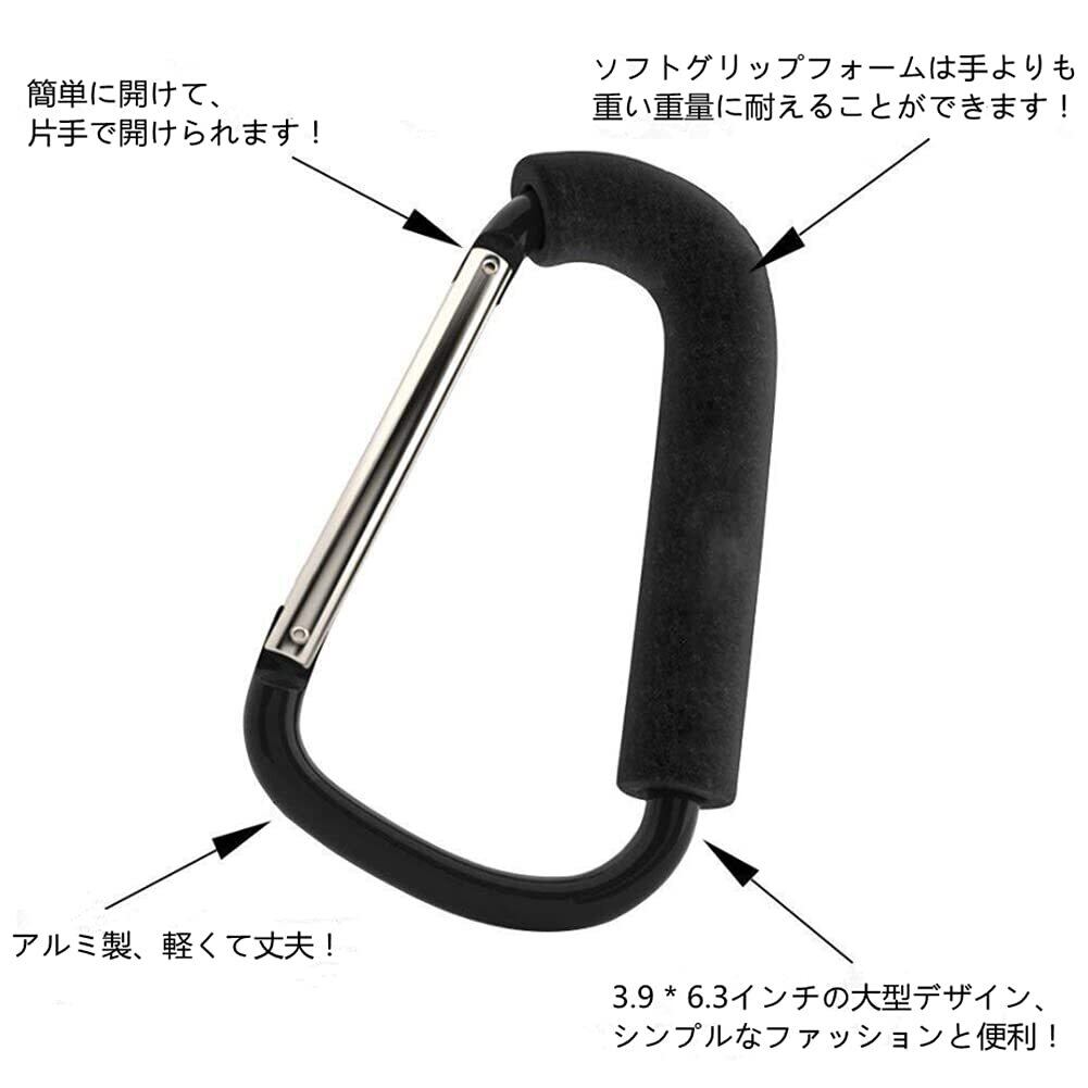 DEEYOTA ベビーカー フック カラビナ アウトドア キャンプ 万能フック マルチフック 荷物フック 滑り止め アルミ合金 軽量 大きいサイズ ベビーカー/バギー/自転車に対応(2個入り)