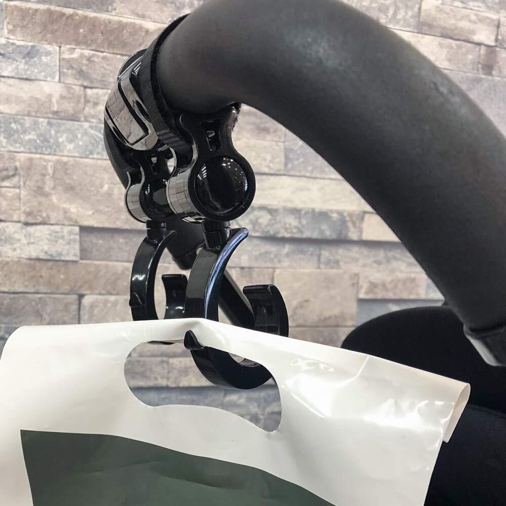 【360度回転】フック部分は360度回転するため、どの向きからも荷物をかけられ、非常に便利です。赤ちゃんを抱っこしながらでも、簡単に荷物をかけることができます。