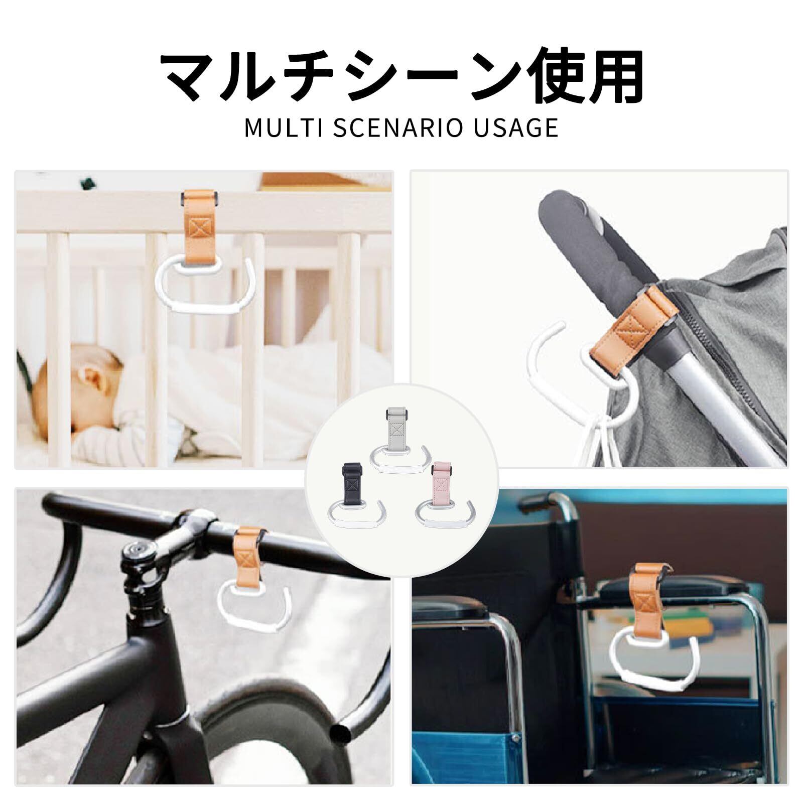JnTech ベビーカーフック マルチフック バギーフック マジックテープ式 耐荷重15kg 荷物かけ 滑り止め マザーズバッグ ベビーカー フック 荷物フック おしゃれ アルミ合金 合皮 高耐久 使いやすい ベビーカー・自転車・バイクに最適 ブラック グレー ピンク 2個セット (ブラック) | yankees