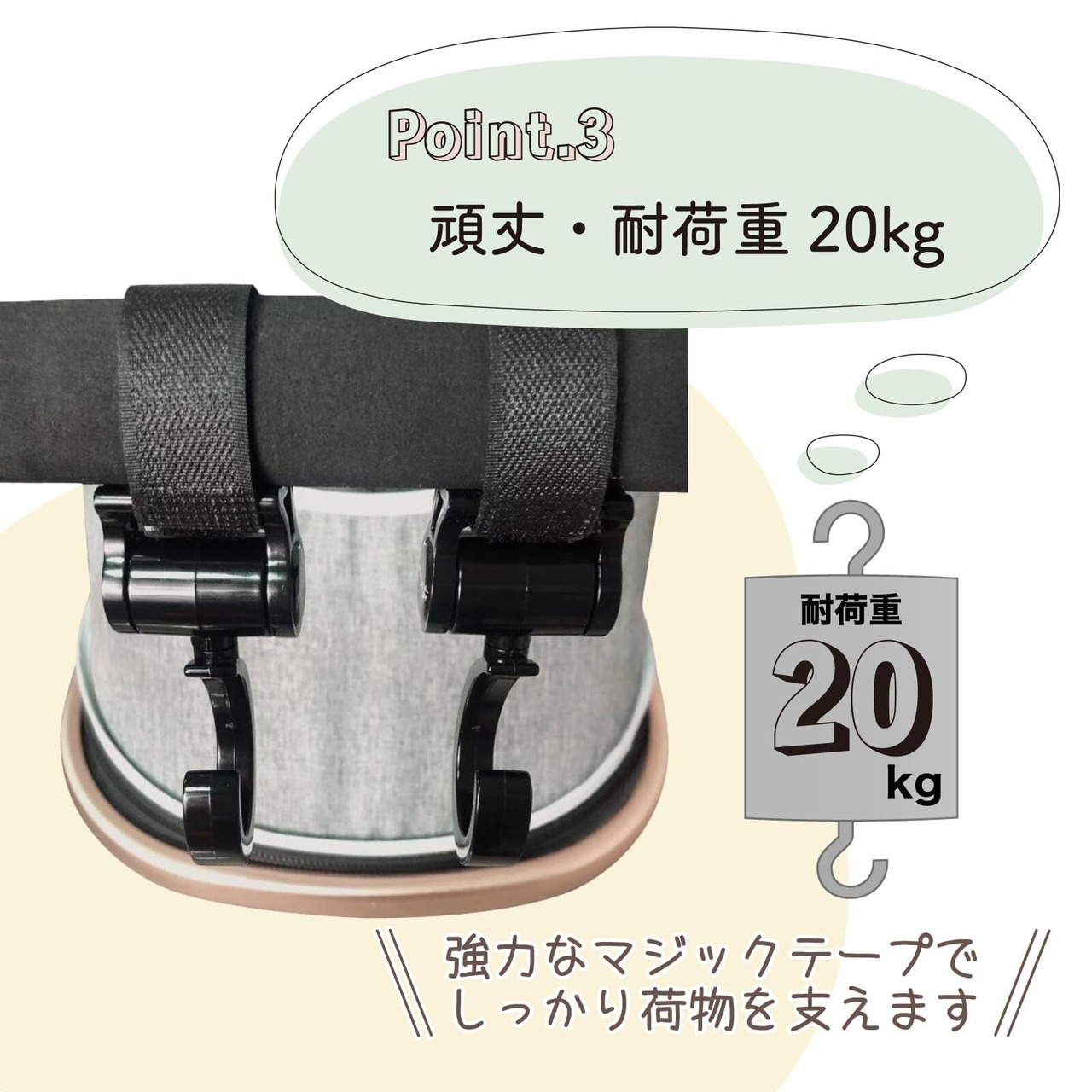 最大約20kgの耐荷重を実現しており、重い荷物も安心して支えます。ショッピングや育児の際の荷物をしっかりと保持し、日常のストレスを軽減します。