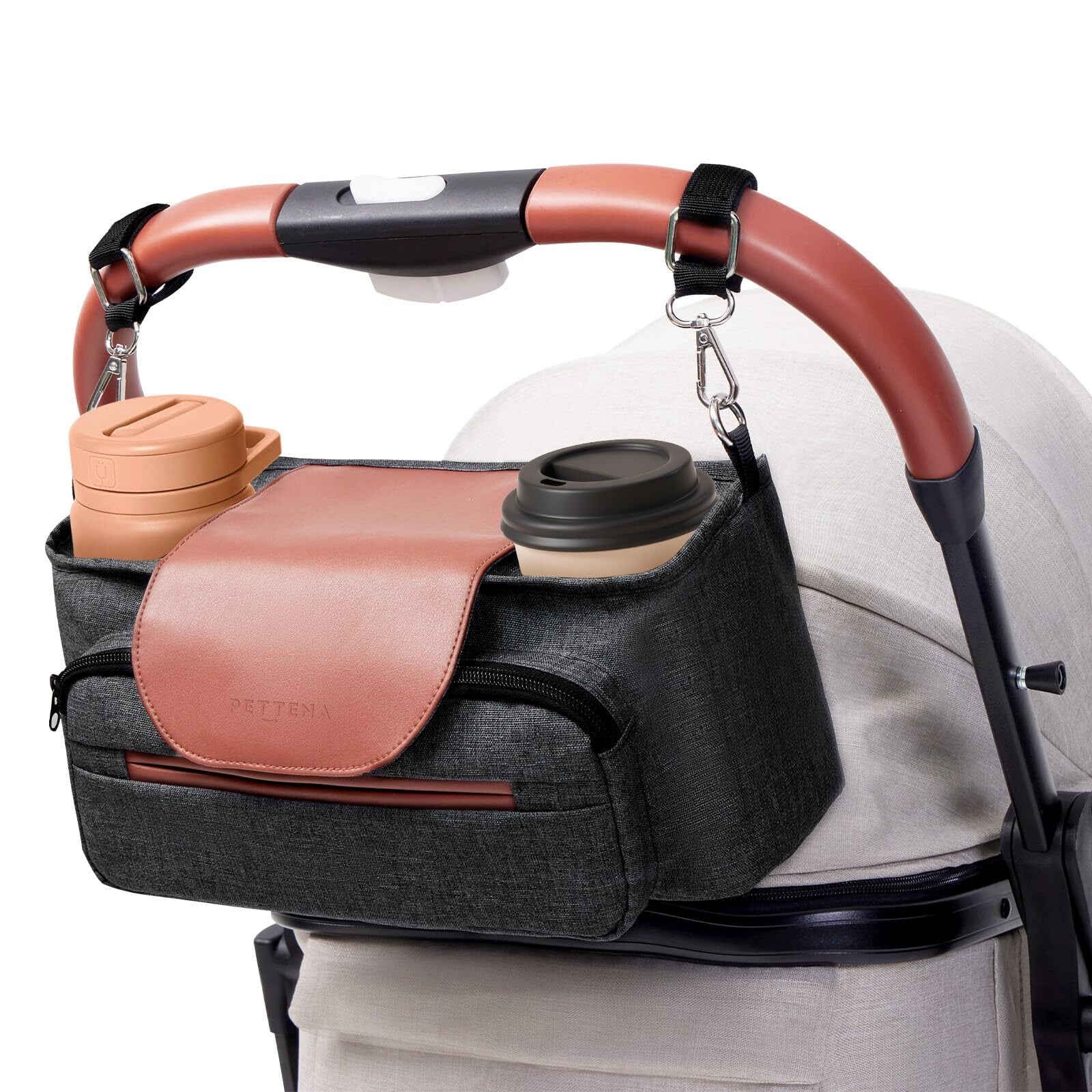 PETTENA ペットカート用バッグ ベビーカー用バッグ ペットカート ドリンクホルダー 収納 手持ち肩掛け2way ショルダーバッグ お散歩 多機能 黒灰色