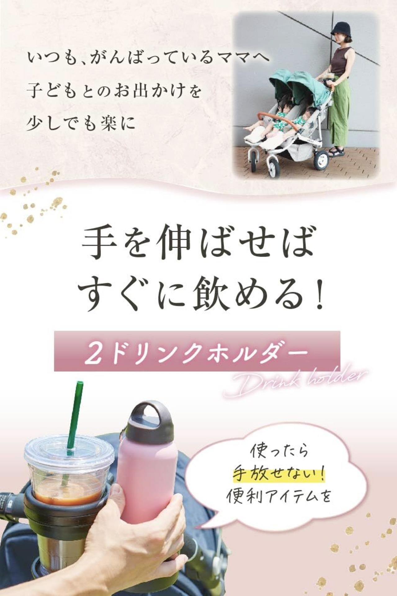 2個セットでパパとママ、または飲み物と哺乳瓶を同時に収納可能