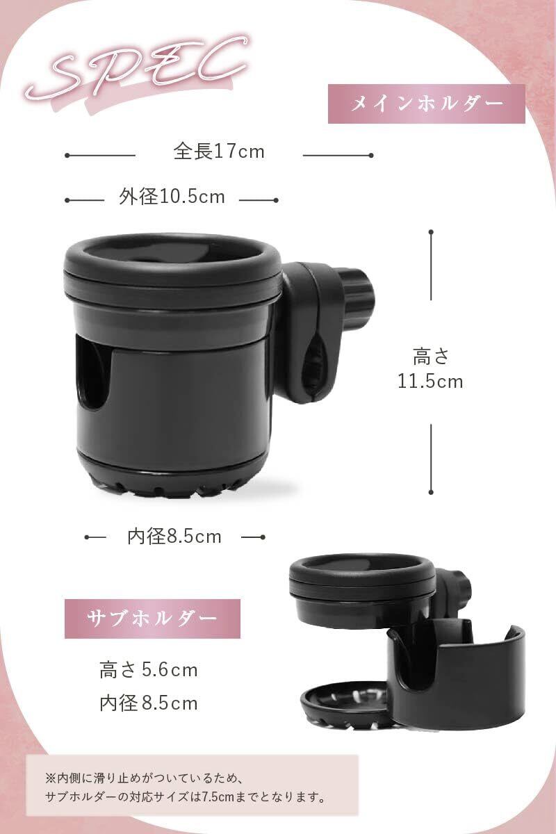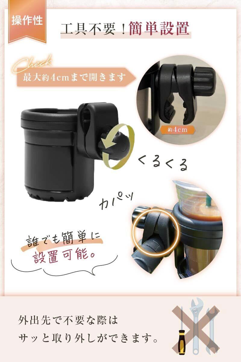 sezu ベビーカー ドリンクホルダー 2個セット カップホルダー ボトルホルダー ベビーカー用 ドリンクスタンド ベビー用品 コンパクト 取り付け簡単(ブラック)