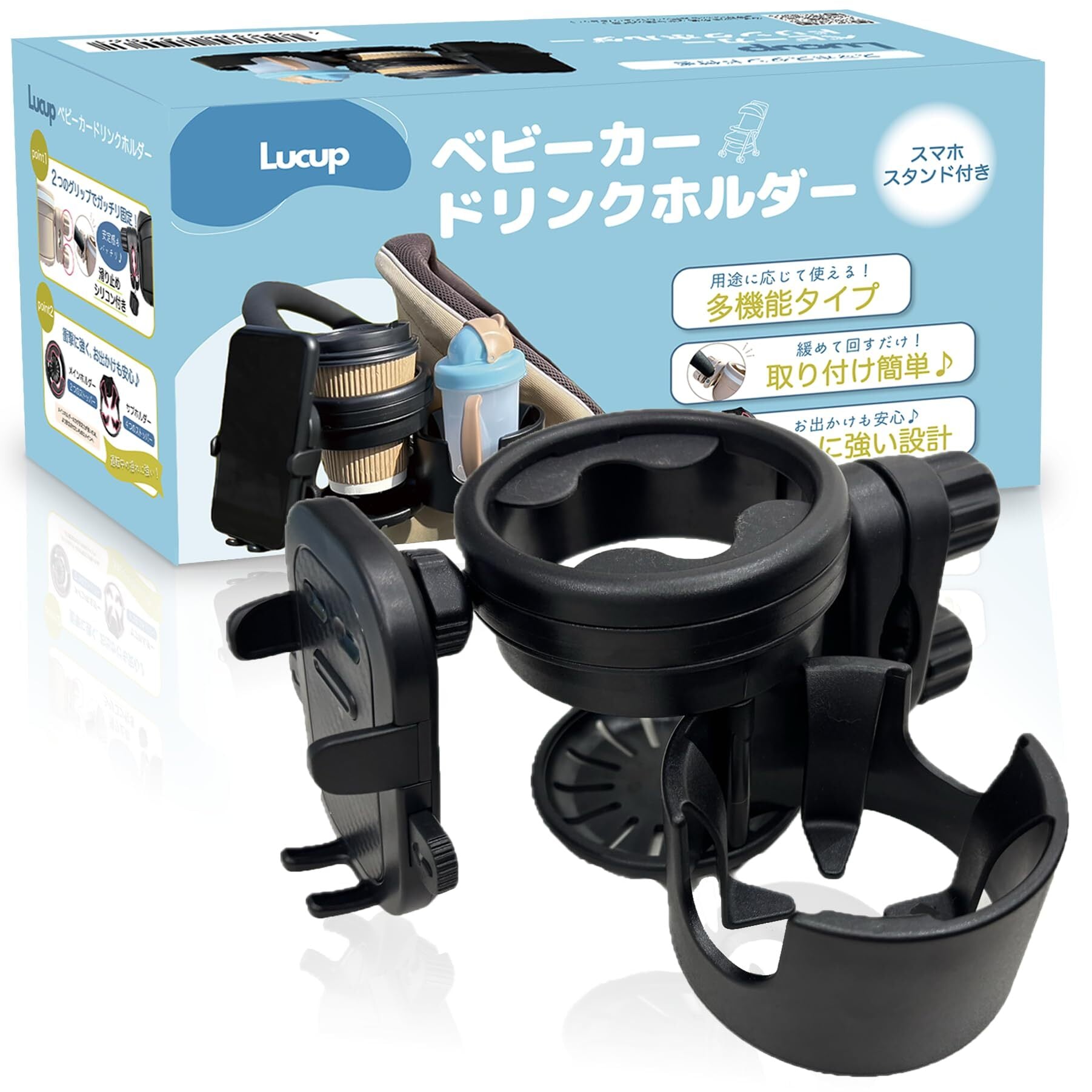 Lucup ベビーカードリンクホルダー 2点で固定 スマホホルダー付き 多機能 360°回転 高耐久耐水