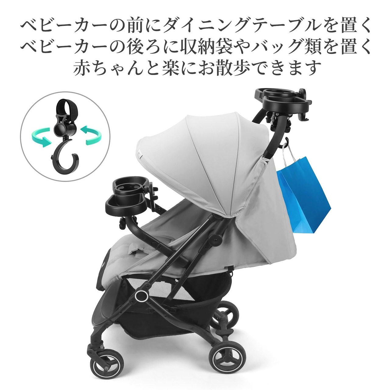 本製品は、耐久性に優れたABS樹脂を使用しており、長時間の使用にも安心です。シンプルでスタイリッシュなデザインは、どんなベビーカーにもマッチし、普段使いにも適しています。