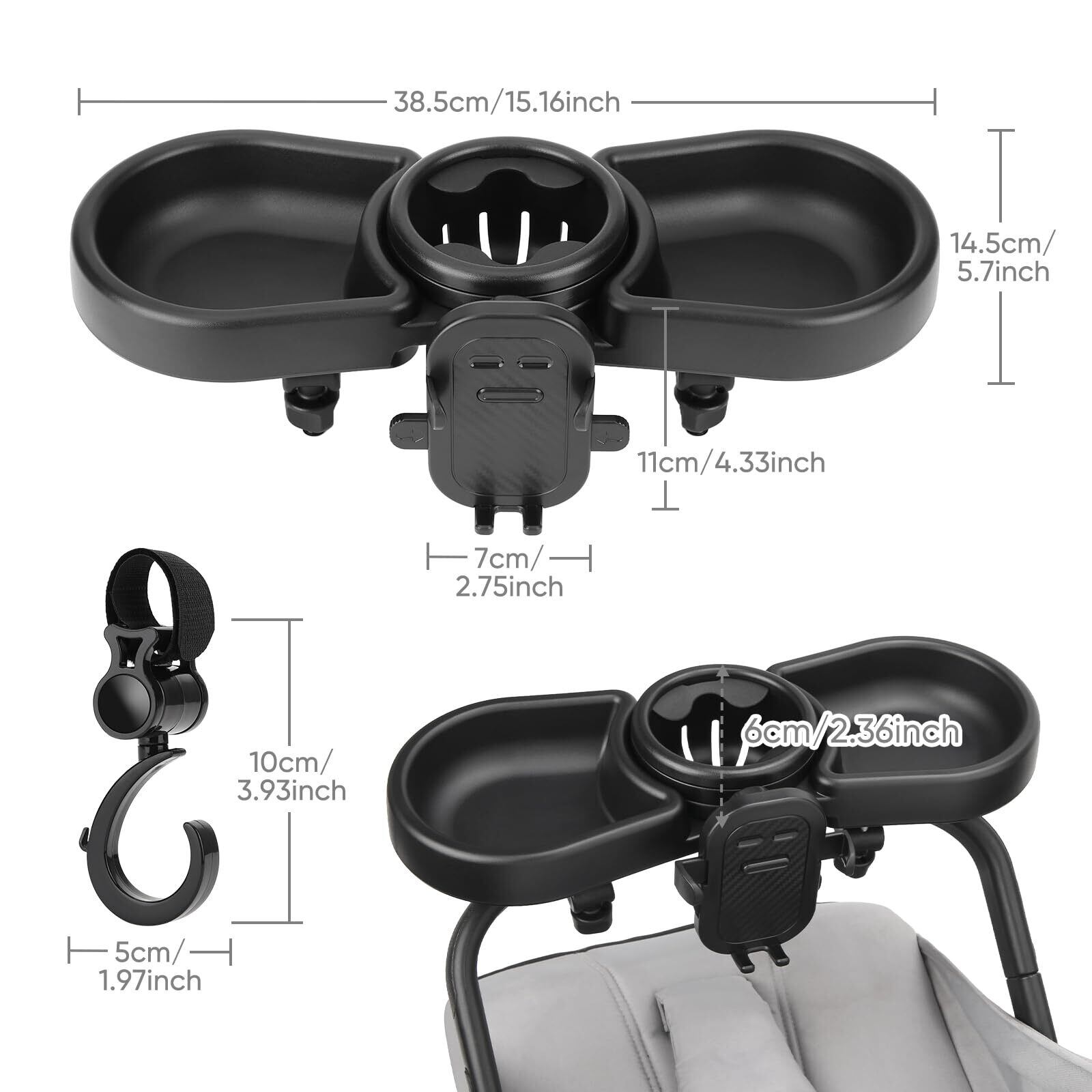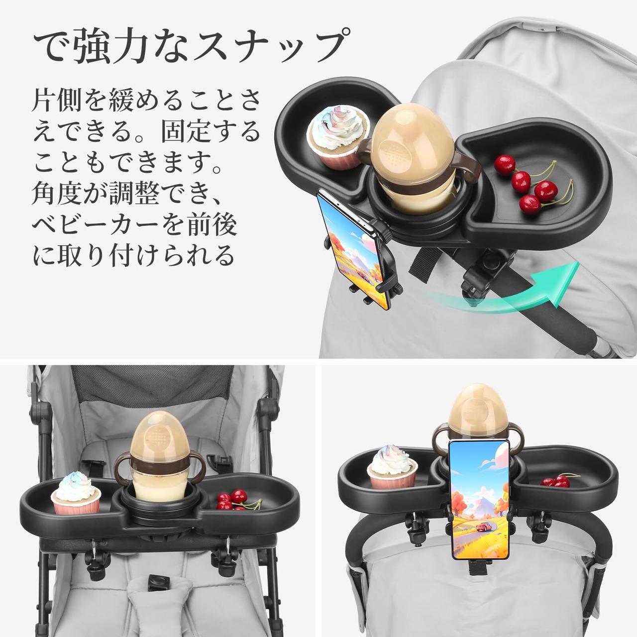 ベビーカー用スナックトレイ スナックカップ汎用ベビーカー用スナックトレイ、4in1ベビーカートレイのアタッチメント カップ 電話ホルダー付き Uppababy、Baby Joggerなどと互換性のある360°回転ユニバーサル MYPIN