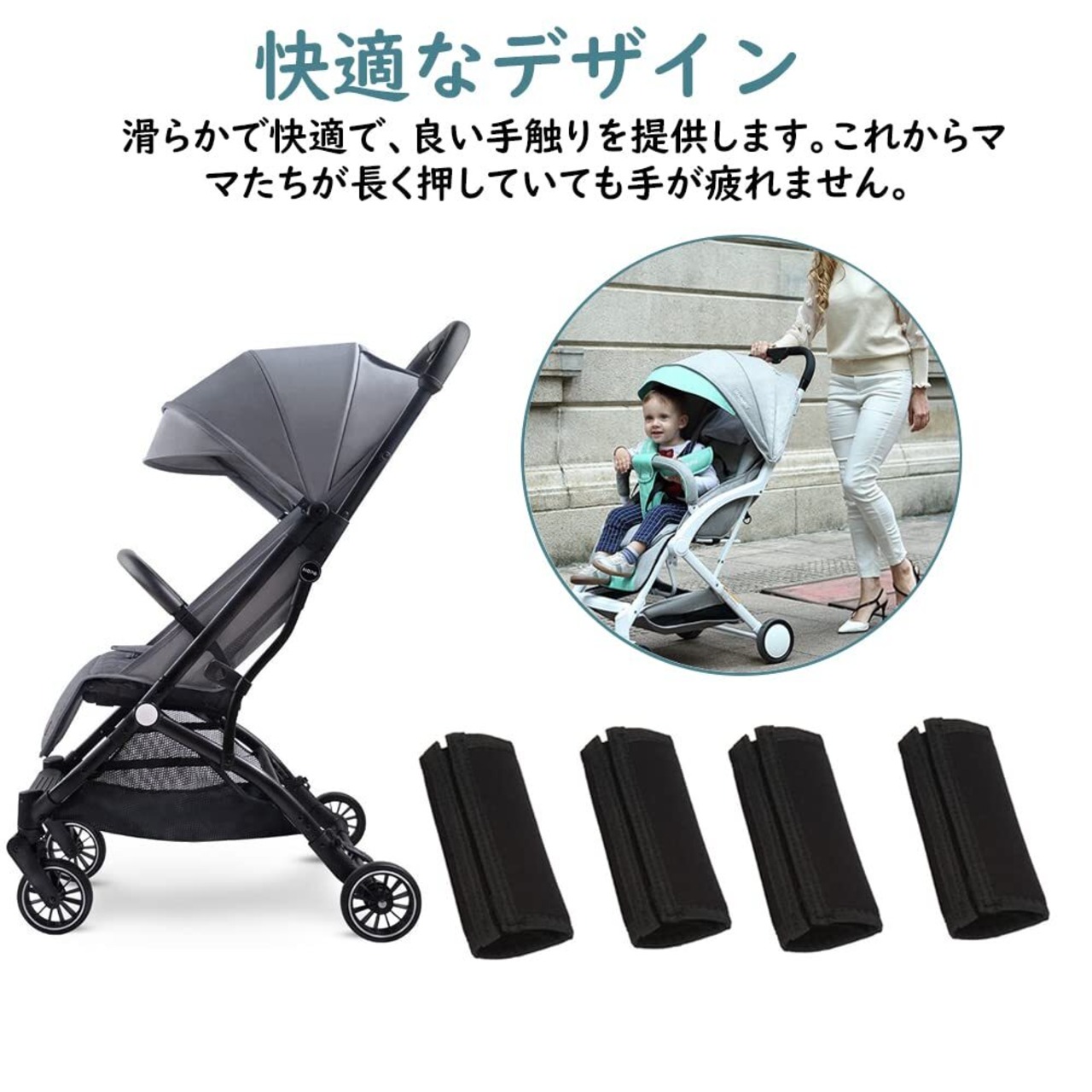 サムコス ベビーカーハンドルカバー 4個セット ベビーカー 保護 ハンドル ブラック 滑り止め 洗える 清潔 ベルトカバー 汚れ防止 ハンドルカバ 手提