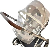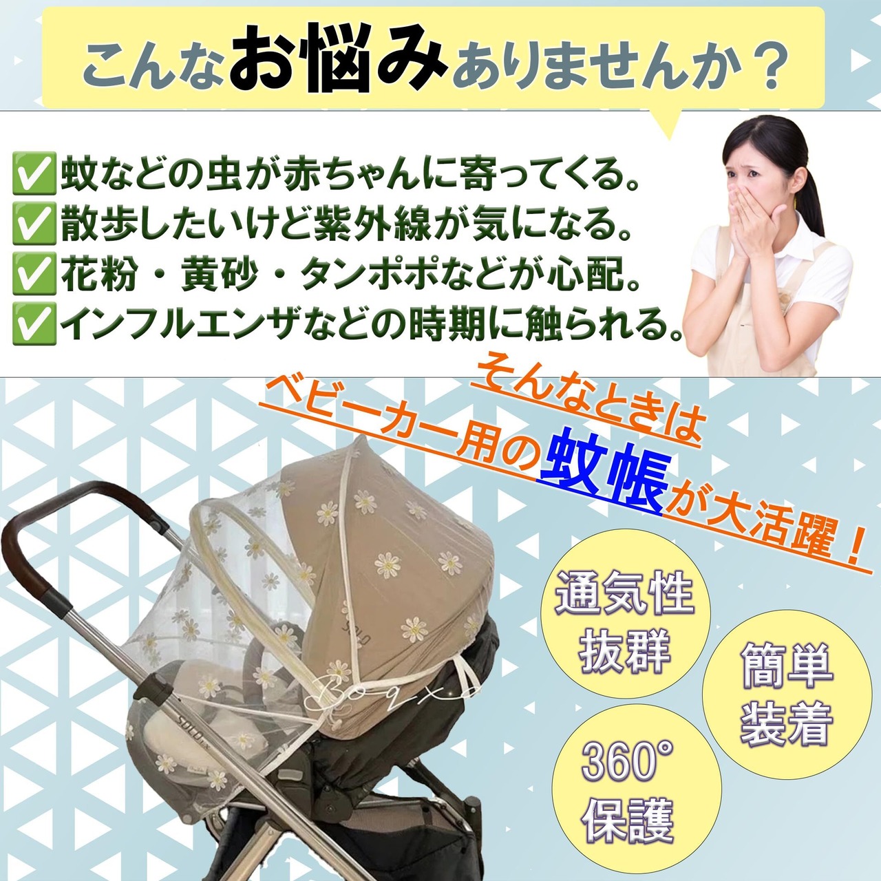 ベビーカーカバー 蚊帳 360°虫除け ゴム密閉 ダブルジッパー 花柄デイジー UVカット 通気性◎ 折りたたみ式 簡単装着 ホワイト/ブラック (ホワイト)
