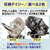 花柄デイジーのデザインは可愛らしく、どんなベビーカーにもぴったり。シンプルだけど華やかな印象で、男女問わずお使いいただけるデザインとなっています。