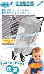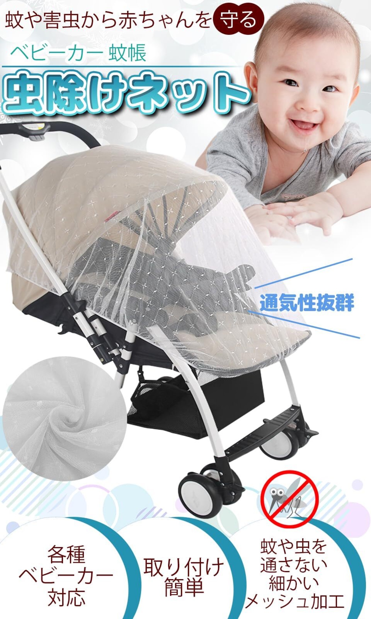 蚊や虫の侵入を防ぐ細かいネット: 細かいネットで蚊や虫の侵入をしっかり防ぎ、赤ちゃんを虫刺されから守ります。