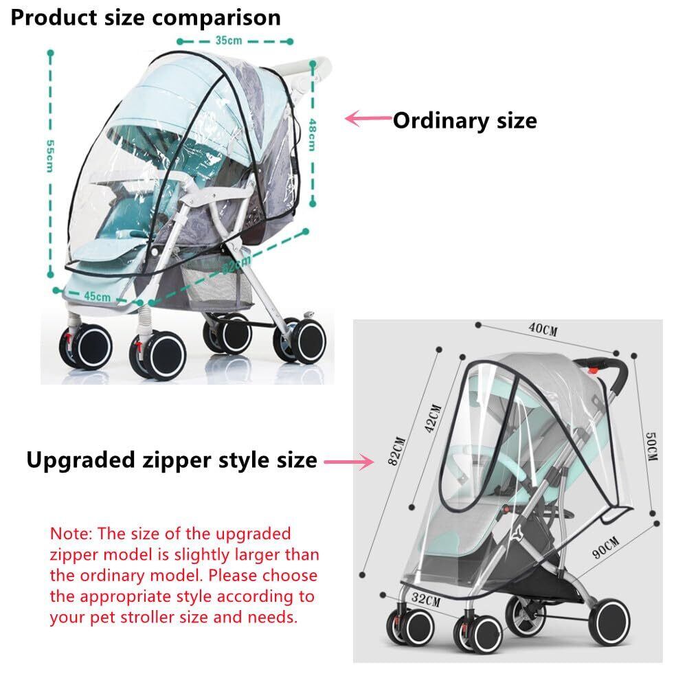 【均一なサイズ】当社のレインカバーは様々なペットベビーカーモデルに適しており、市場に出回っている99%のペットベビーカーにほぼ適しています。 ファスナー式は大きめのサイズになりますのでご注意ください。 ペットベビーカーのサイズに合わせて選べます。