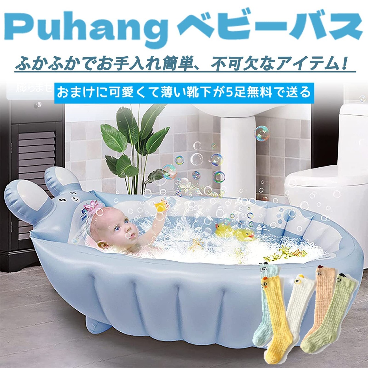 Puhang ベビーバス 赤ちゃん浴槽 子供用風呂 児童バスタブ ふかふか 折りたたみ 空気入れポンプ付き 滑り落ち防止 水抜き穴 収納容易 持ち運び 安心感 安全素材 0~8歳 L 靴下5足おまけ グリーン 滑り止めの位置が真ん中に | yankees