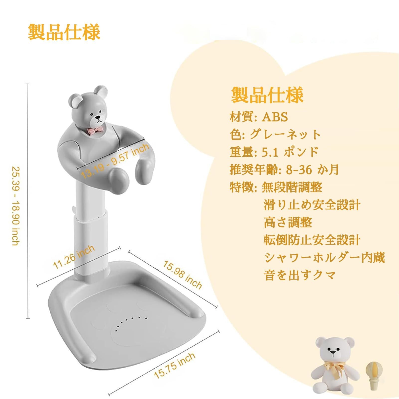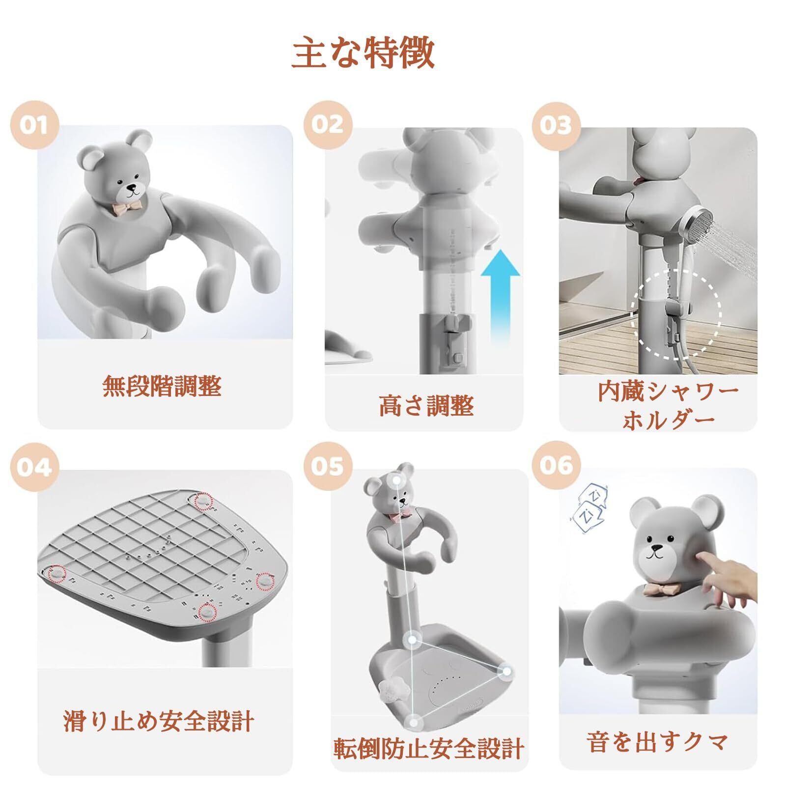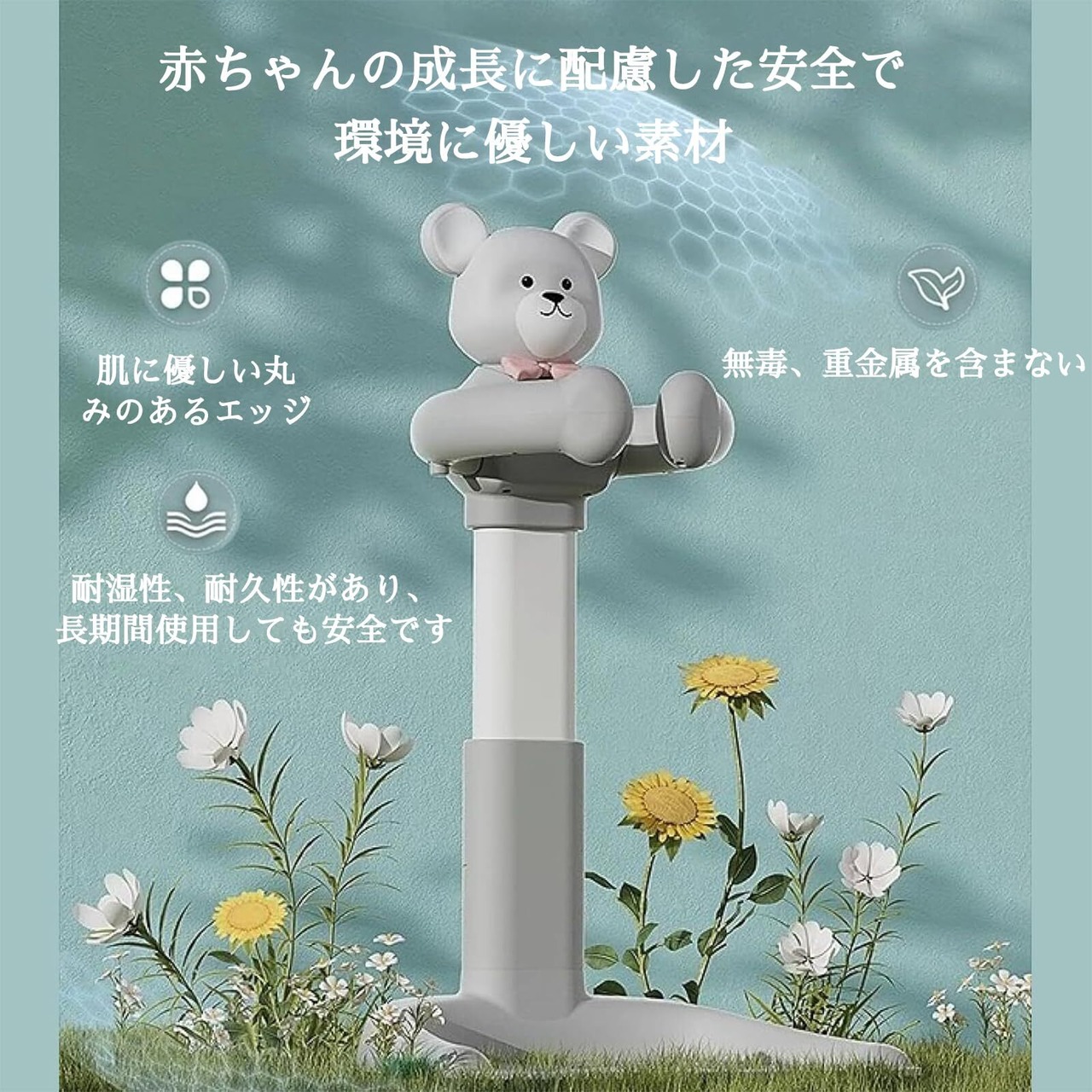 この入浴補助機は、滑り止めベースが付いており、赤ちゃんが立つ際にも安心して支えることができます。また、調節可能な設計により、成長に合わせて最適な高さでご使用いただけます。「※この商品に関するご質問がございましたら、お気軽にお問い合わせください。」